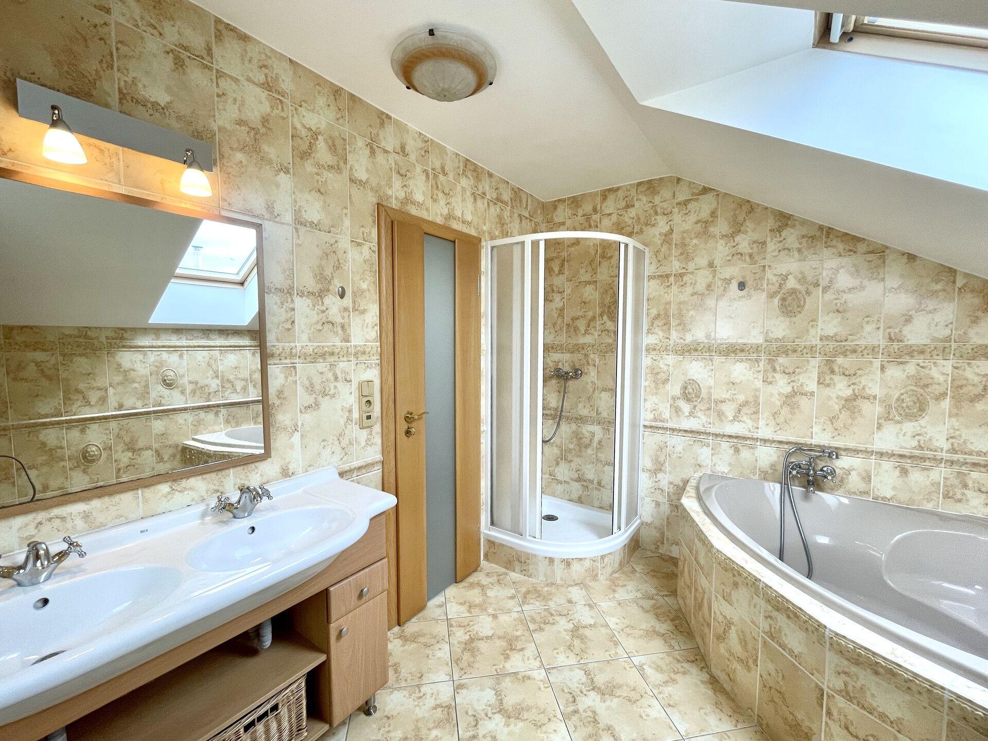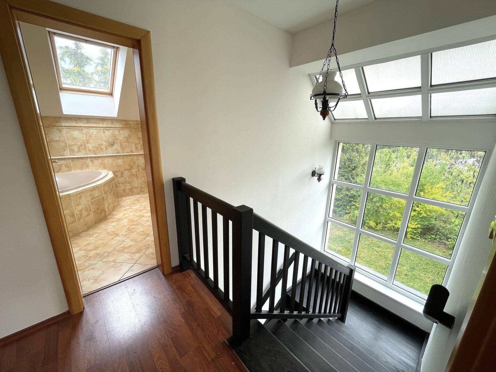 Nabízíme k pronájmu dům z roku 2006 s dispozicí 4+kk s rozlohou 120 m2. V přízemí je předsíň, technická místnost s plynovým kotlem, WC, obývací pokoj s krbem a výstupem na terasu a kuchyňský kout se spíží. V patře jsou 3 ložnice, z nich 2 mají přístup na balkon a dále pak velká koupelna s rohovou vanou, WC a pračkou. Všechna okna jsou vybavena vnitřními žaluziemi a střešní okna roletou. Dům je vytápěn plynovým kotlem a krbem s teplovzdušným výměníkem, který vede teplo i do 2 ložnic v patře. I přes menší výměru pozemku je zajištěno soukromí a v létě potěší i markýza nad terasou, která uleví od slunečních paprsků.