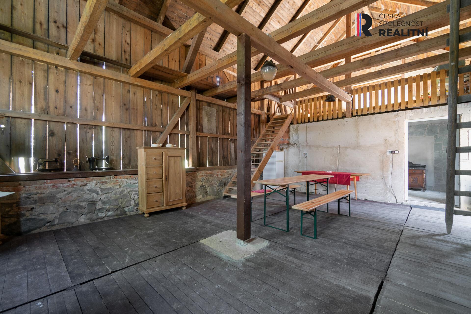 Vedle domu nebo chalupy se nachází stylová stodola (r. 1927), kde je možné kryté posezení v letních měsících. Venkovská stodola (7x11m) je vhodná pro párty a ke společnému trávení volného času, vybavena zahradním nábytkem, výčepem a 2 toaletami s umyvadlem.