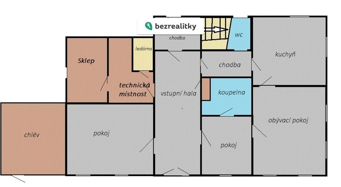 Dům je určen k rekonstrukci, což umožňuje novému majiteli přizpůsobit si nemovitost podle vlastních představ.