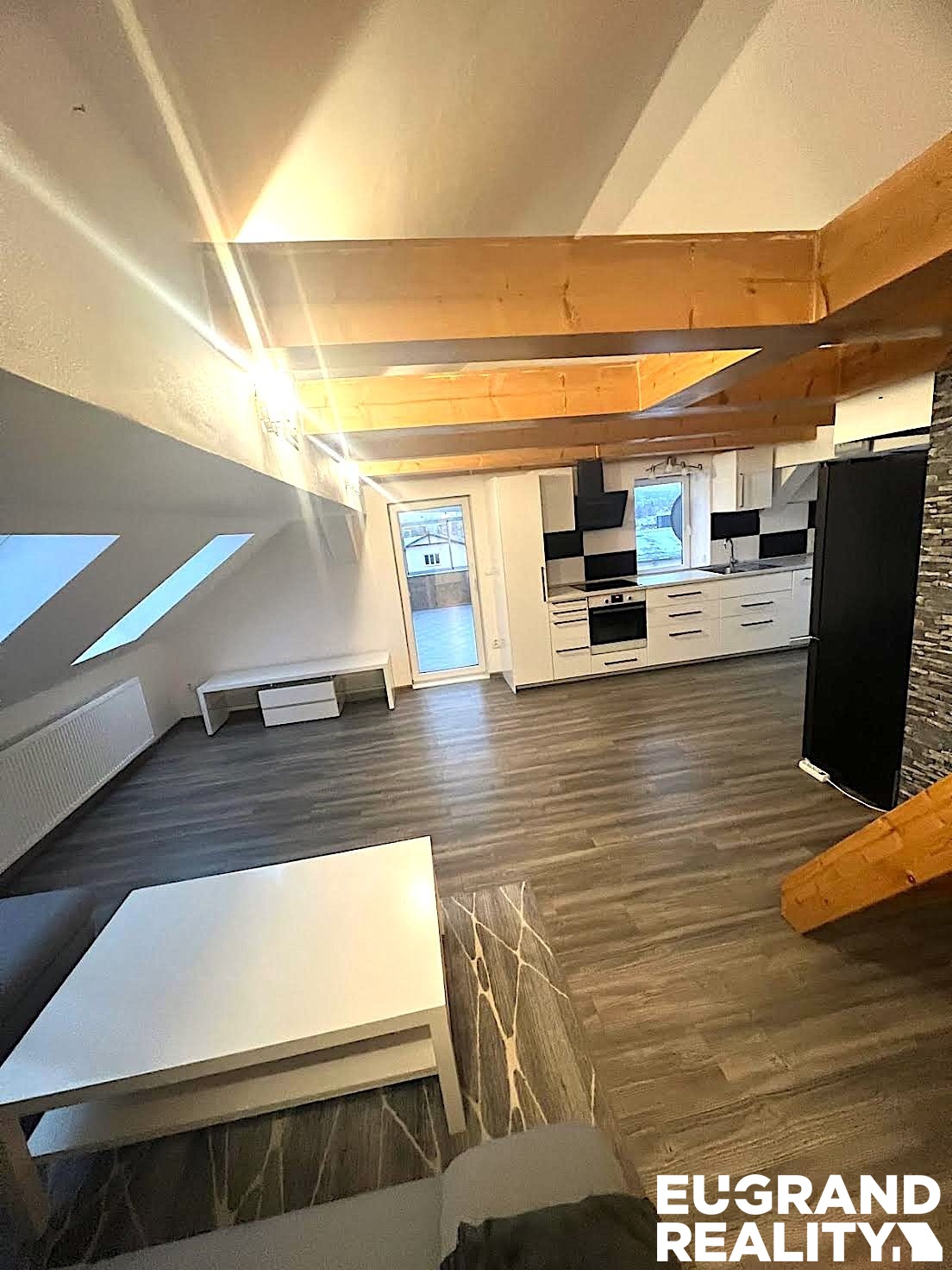 V druhém patře je nádherný prostorný byt 3+1 o velikosti 165 m2 + patrem na spaní. Tento byt má zimní zahradu, vytápěný ateliér, klimatizaci a okenní rolety.
