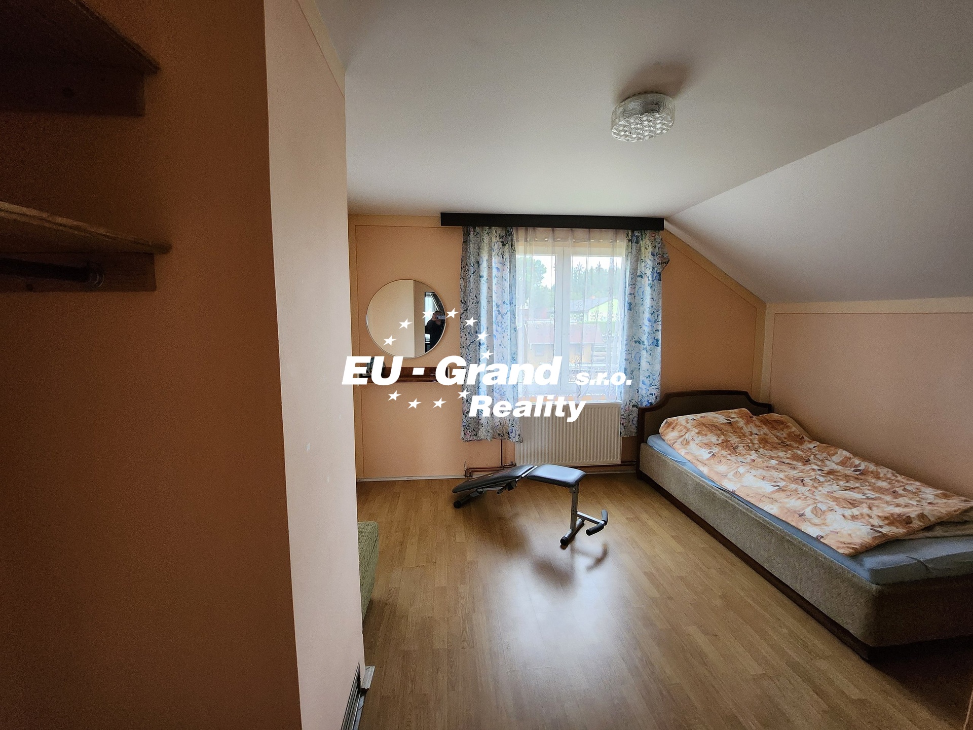• V patře je větší chodba, koupelna se sprchovým koutem a WC, ložnice a dětský pokoj.