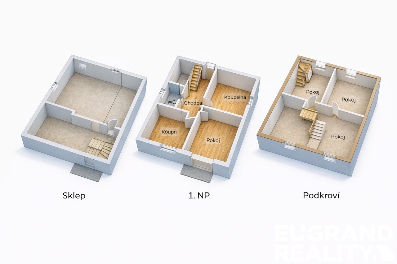 Dům je kompletně podsklepen, což poskytuje dostatek úložného prostoru či možnosti technického zázemí. V suterénu se nachází také vlastní studna. Nemovitost disponuje půdním prostorem, který nabízí potenciál pro vybudování dalších obytných místností a rozšíření dispozice dle vlastních představ.