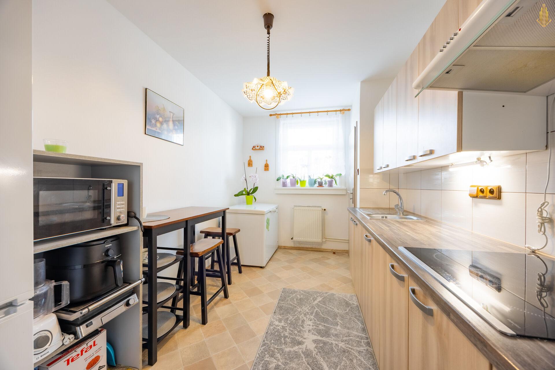 Byt působí vzdušně a příjemně, má dostatek denního světla a nabízí praktické uspořádání místností s dostatkem úložných prostor. K bytu náleží sklepní kóje.