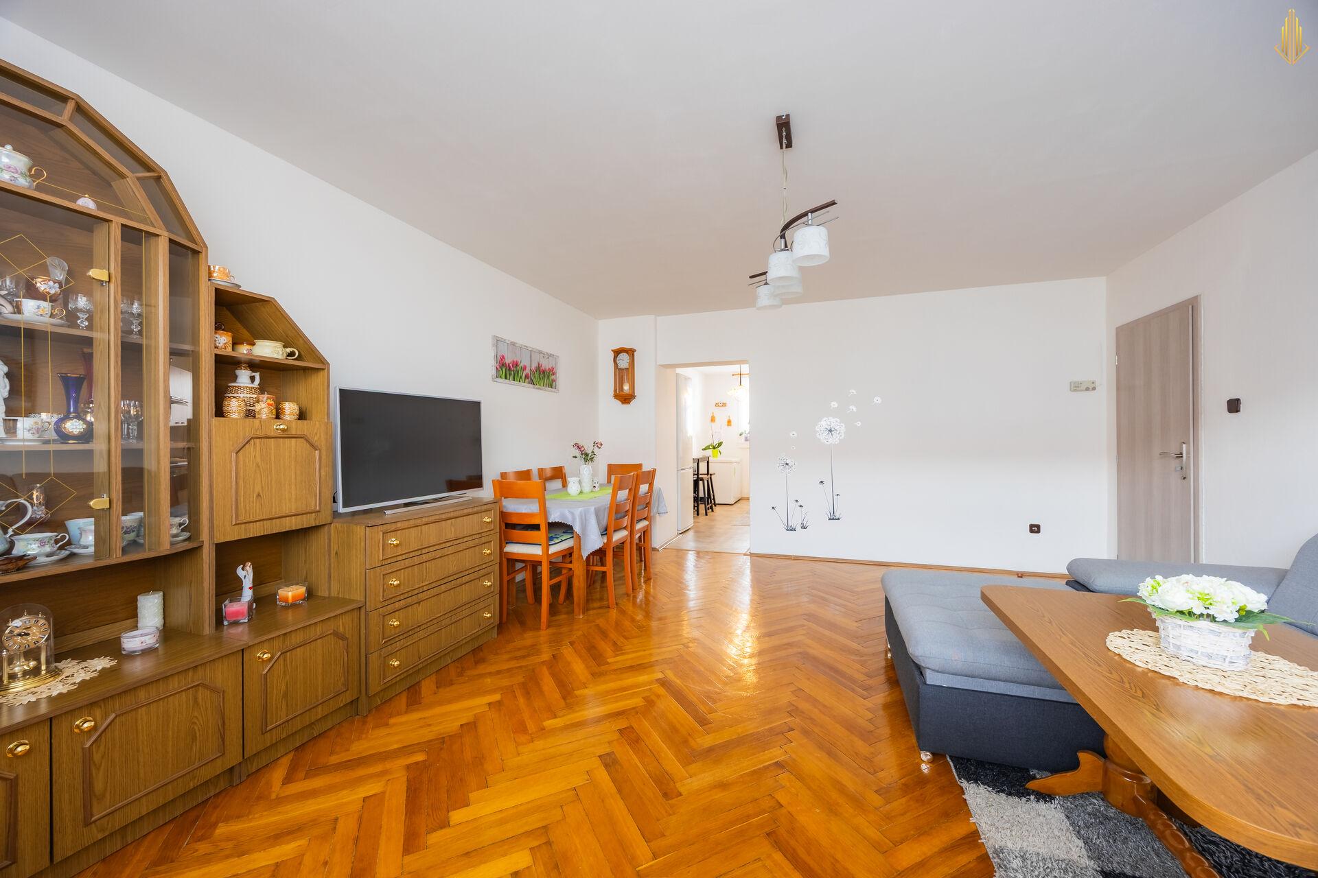 Dispozice bytu je prakticky řešená a vhodná zejména pro rodinu. Dominantou je světlý obývací pokoj, který nabízí dostatek prostoru pro odpočinek i setkávání s rodinou. Dále zde najdete samostatnou ložnici a dětský pokoj. Kuchyň je oddělená, s dostatkem místa pro jídelní kout. Koupelna je udržovaná a součástí bytu je také samostatné WC.