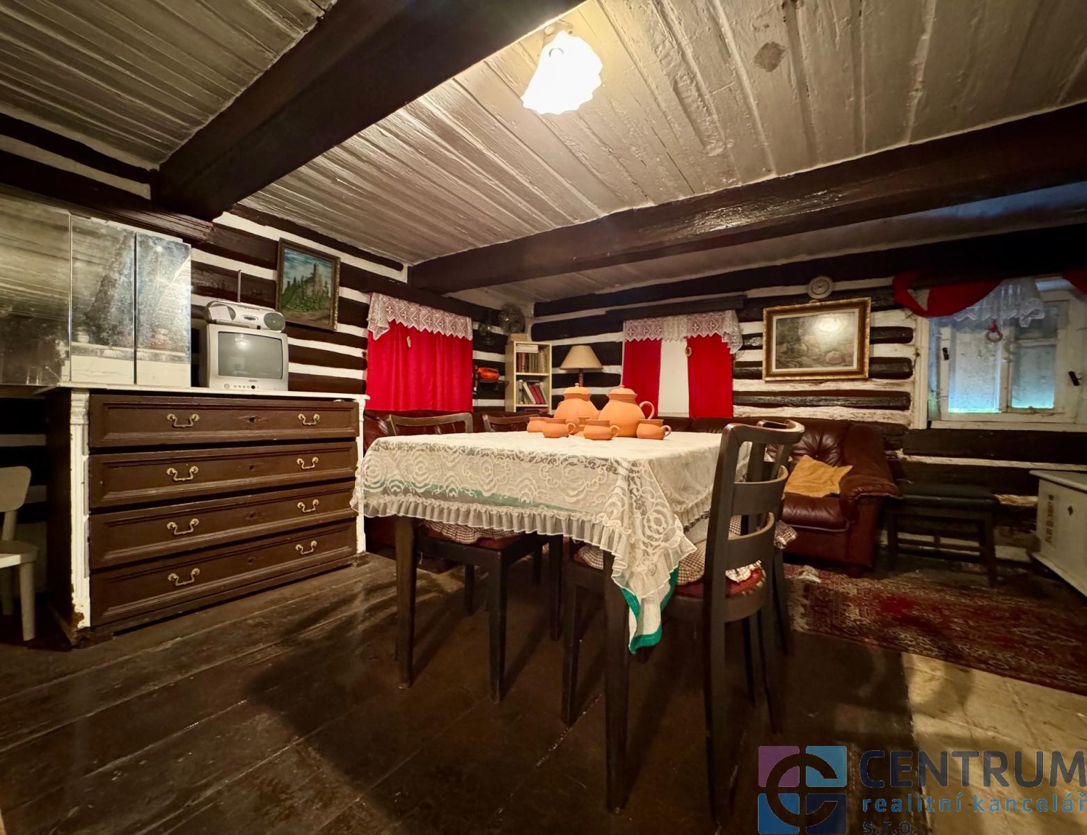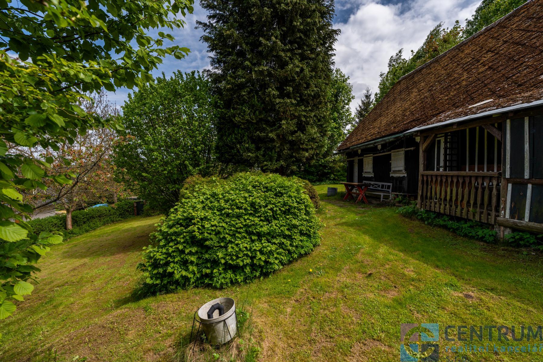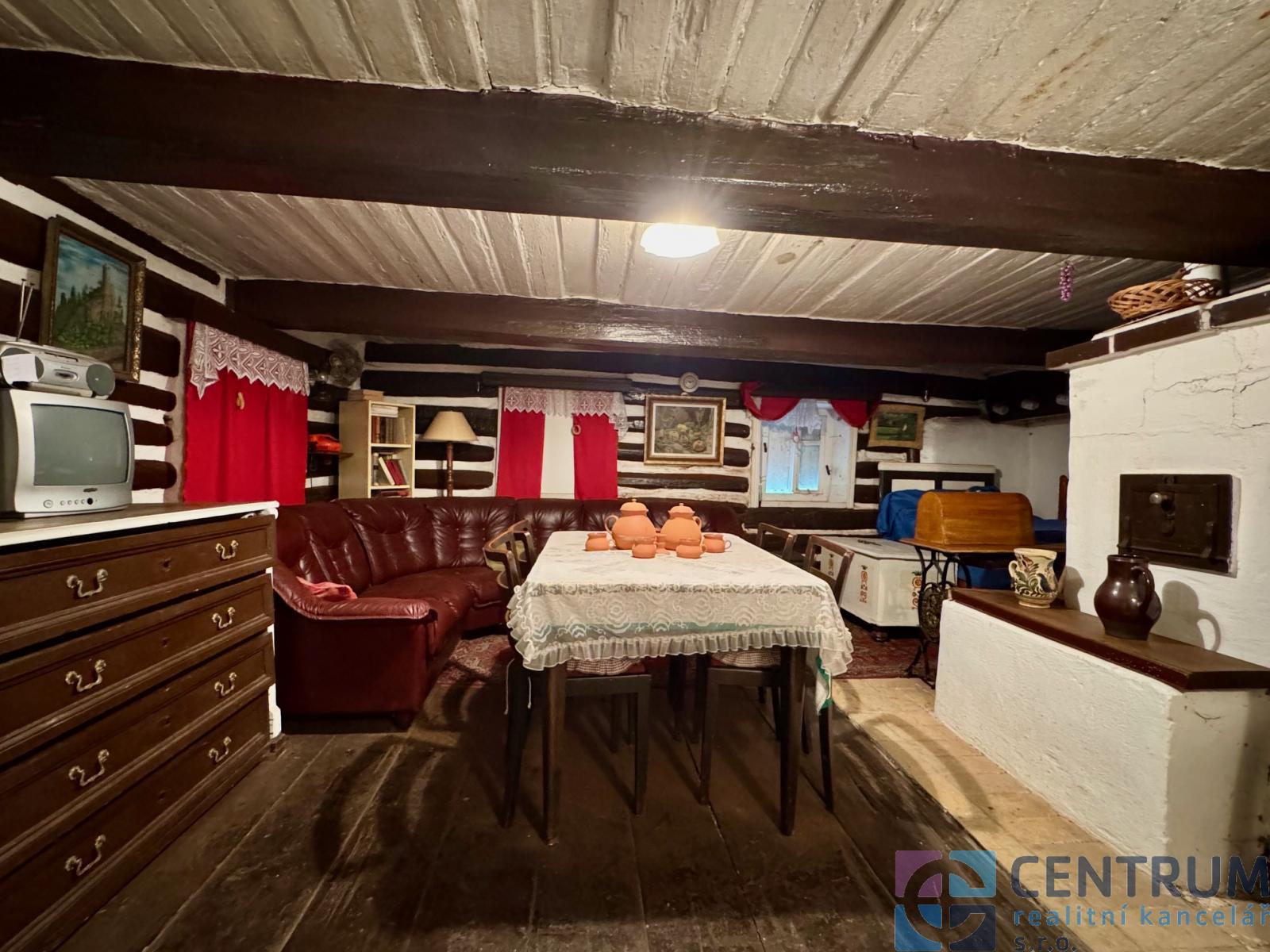 Na pozemku je vystavěna roubenka z konce 19. století, kterou můžete využít k rekreaci nebo jako dočasné zázemí budoucí stavby. Přes sto let starý roubený dům byl v posledních padesáti letech průběžně udržován a sloužil jako chalupa pro víkendovou rekreaci. V přízemí se nachází větší hlavní obytná místnost s původní pecí, kuchyně, koupelna a pod schody do podkroví schody vedoucí do menšího klenutého sklepa. Podkroví je rozděleno na dvě místnosti sloužící pro skladování - nikdy nebylo plnohodnotně využíváno jako obytné.