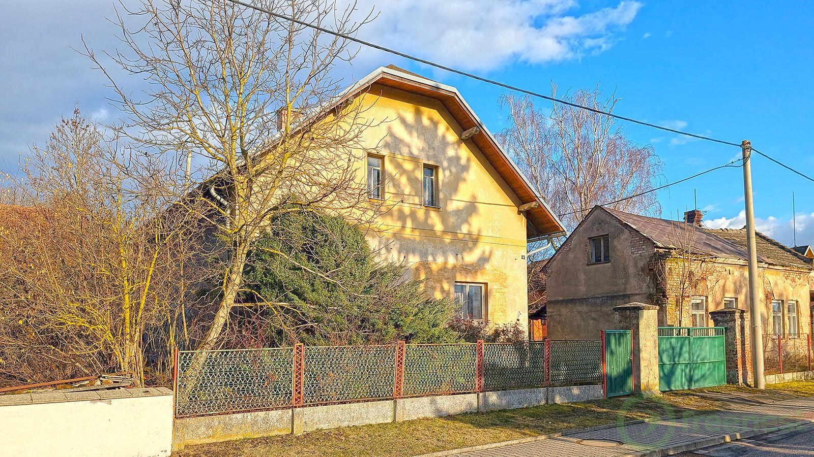 Hlavní rodinný dům je stavba o zast. ploše 112 m2 s obytným přízemím a částečně obytným podkrovím, částečně podsklepená (cca 20 m2). V přízemí se nachází obývací pokoj (25,7 m2), druhý pokoj (18,6 m2), kuchyň (12,2 m2), koupelna (4,4 m2), wc (1,2 m2), chodba (11 m2), kotelna (2,3 m2) a tři obytné místnosti zastavěné do navazující hospodářské části - druhá obytná kuchyň (18,8 m2), komora (3,6 m2), prádelna (4,7 m2). V podkroví hlavního domu se nachází obytný pokoj (13,9 m2) a dva půdní prostory (celkem 67,2 m2). Do domu je zavedena elektřina (230/400V), voda z vlastní studny (studna je však nefunkční), telefon/internet (CETIN), odkanalizování je řešeno přípojkou na obecní splaškovou kanalizaci. K dispozici přímo před domem je též přípojka obecního vodovodu (rozvod vody do domu nezaveden). Vytápění je řešeno jako ústřední s radiátory a kotlem na tuhá paliva; doplňkově bylo vytápěno lokálně kamny. Ohřev TUV zajišťuje elektrický bojler. Dům je s ohledem na své stáří v poměrně dobrém stavebně technickém stavu, v předchozích letech byla osazena nová střešní krytina (asfaltový šindel). Adaptace na současné standardy vyžaduje rekonstrukci.