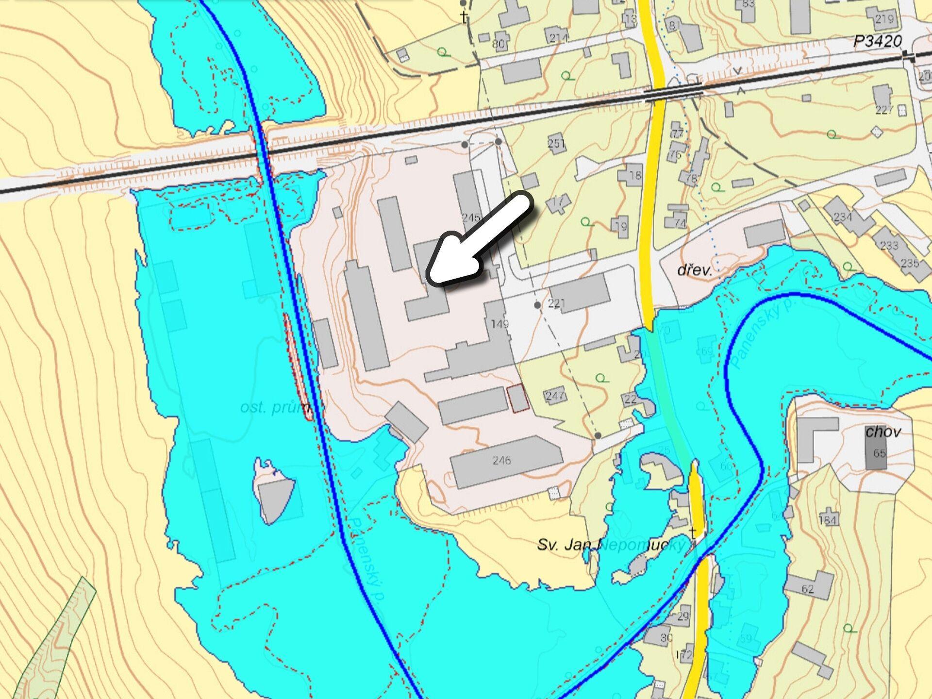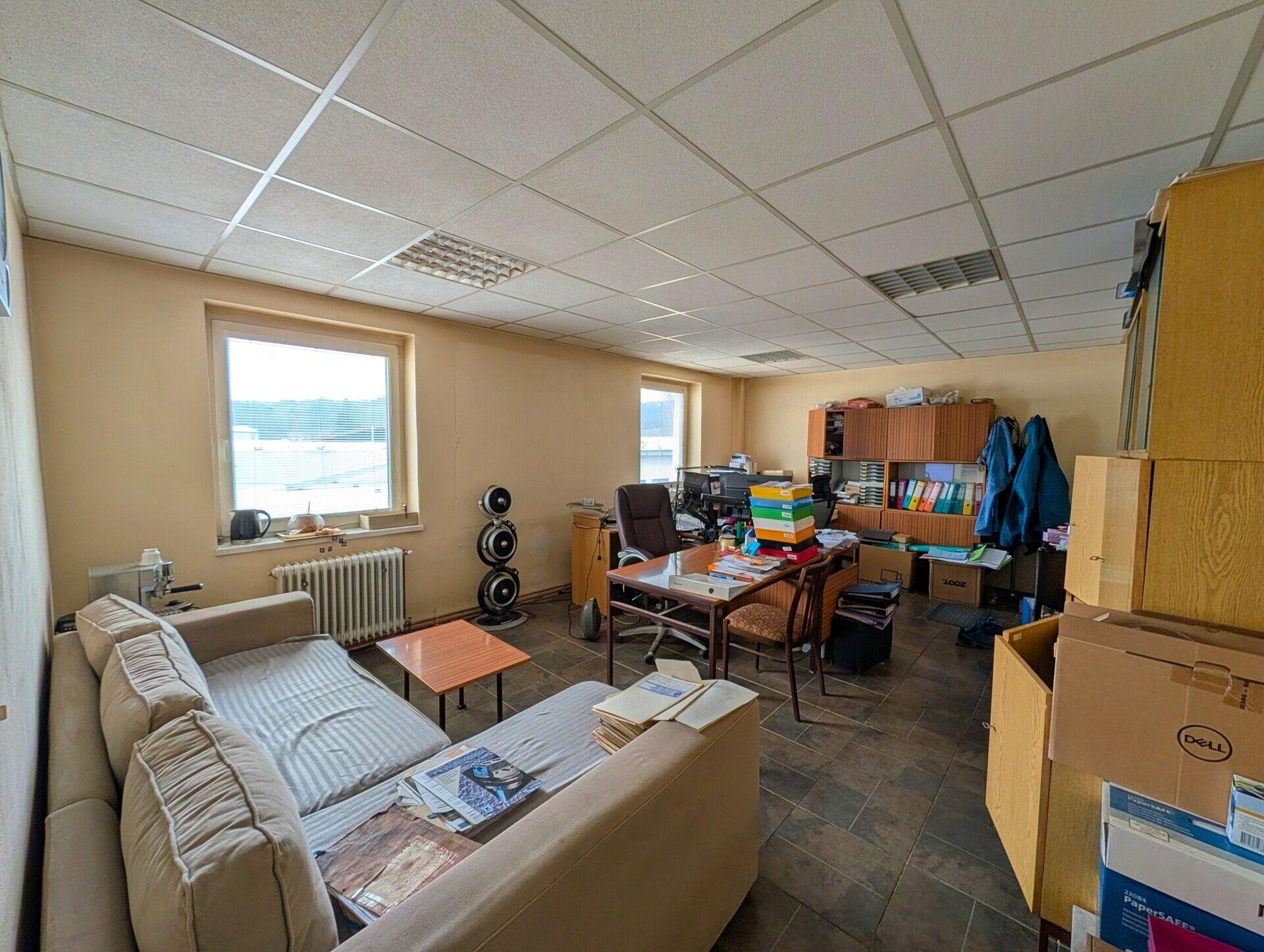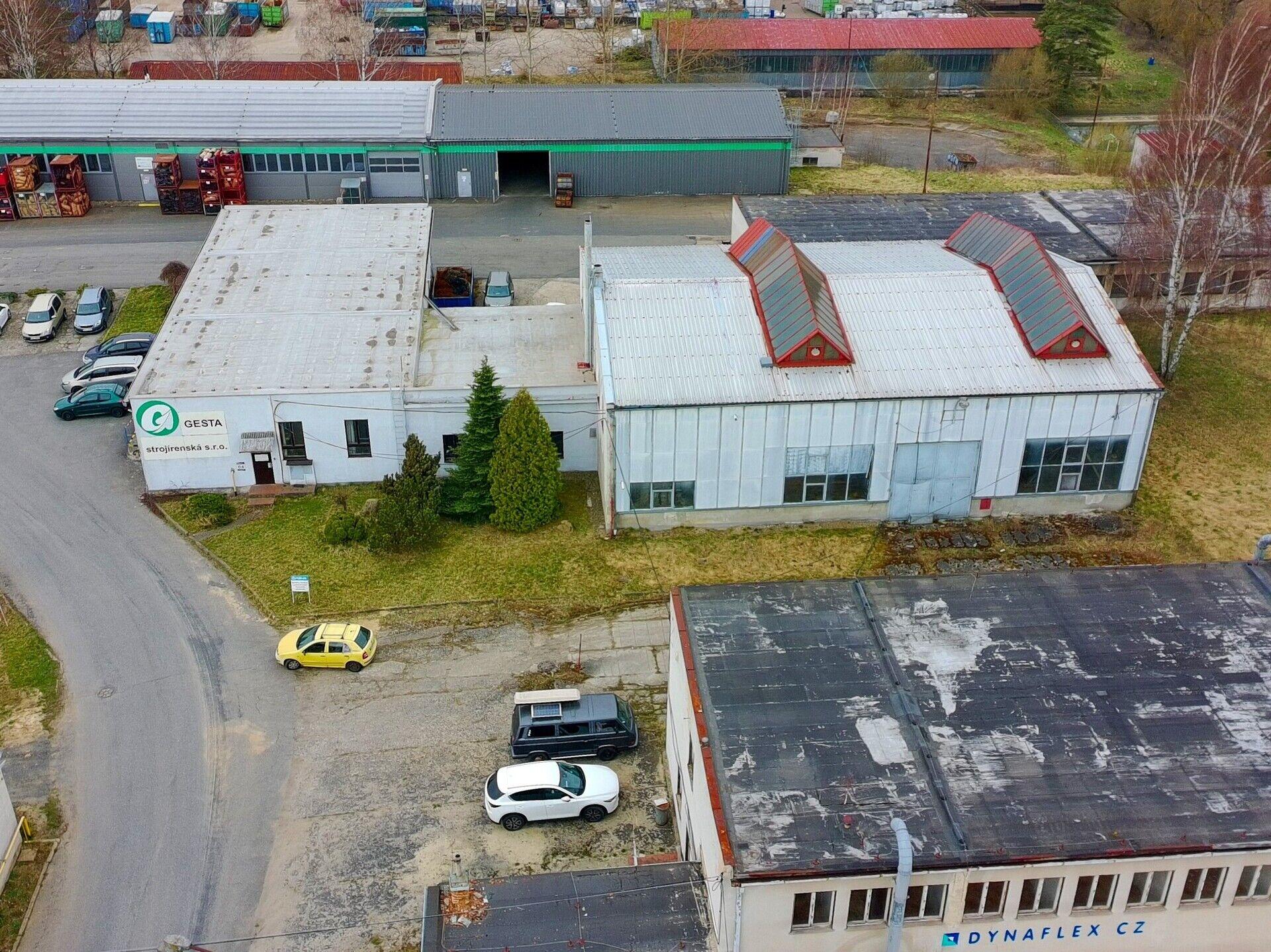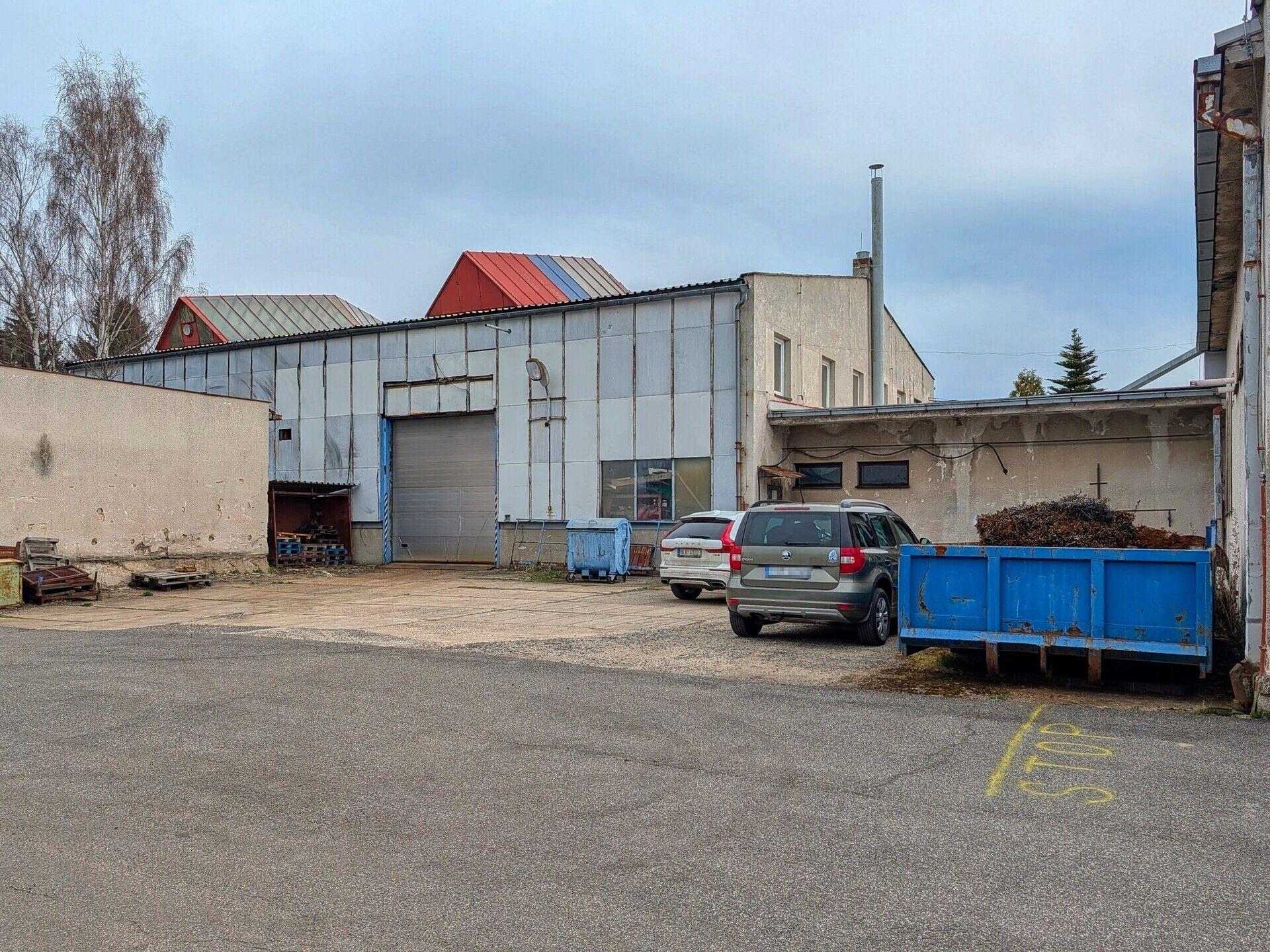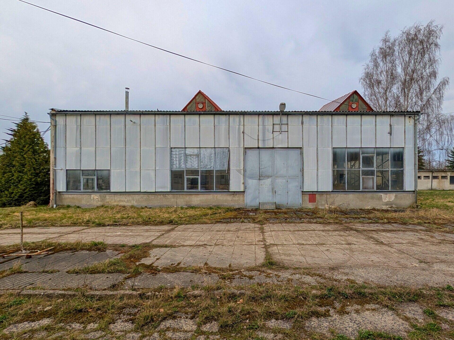 Dílny, sklady: přízemní objekt; celková zastavěná plocha 408,30 m2; ocelová konstrukce; opláštění s typizovanými panely; světlá výška 4,05 m; zahrnuje dílny, sklady, kancelář mistra; betonová podlaha; vytápění plynovými Saharami; vstup dvoukřídlými vraty (2,9 x 2,6 m) v úrovni terénu a dvoukřídlými vraty (2,9 x 3,3 m) na nakládací rampě (výška rampy 0,55 m).