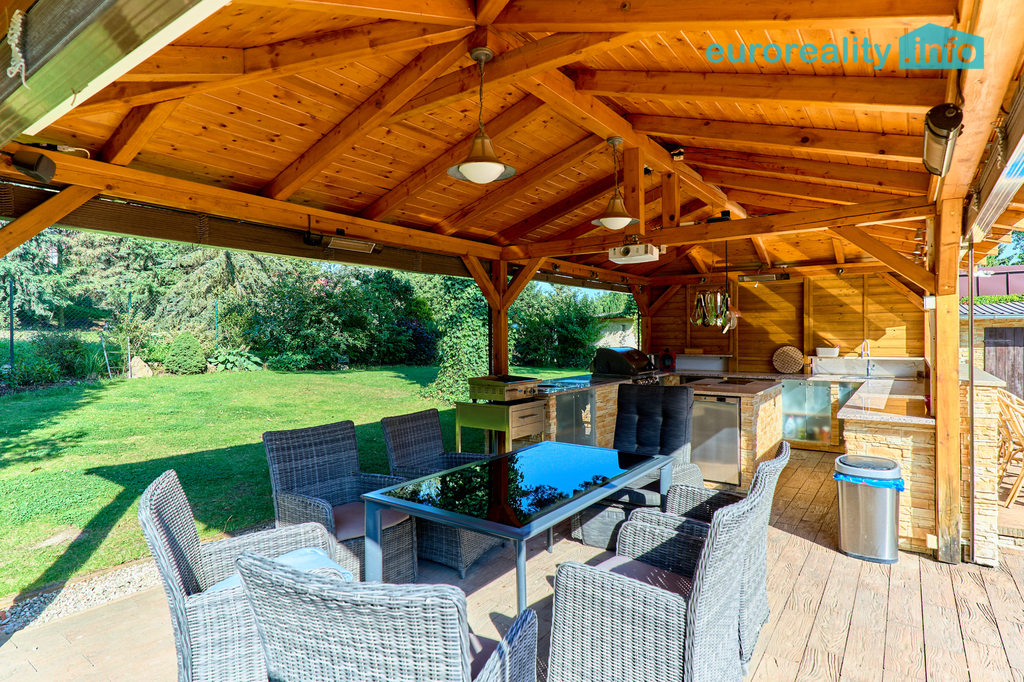 Nabízíme k prodeji velmi specifickou nemovitost, která může splnit mnoho představ budoucích majitelů. Jedná se o komplex dvou rodinných domů, velké dílny (garáže) s rozsáhlou zahradou, bazénem, pergolou a technickým přístavkem. První rodinný dům - dvoupatrová, zděná, podsklepená stavba z poloviny minulého století, byla zcela zrekonstruována a nabízí vkusně zvolený design s velmi dobrou dispozicí. V přízemí se nachází kuchyně s obývacím pokojem, koupelna s WC, pokoj se saunou a další koupelnou, v prvním patře jsou umístěny tři pokoje a koupelna s WC. Na zahradě před domem je kopaný bazén, letní - kompletně vybavená kuchyně v pergole s promítacím plátnem a posezením. Předmětem prodeje je dále druhý rodinný dům (zast. plocha 115m2), který je ve fázi výstavby. Jedná se o dvoupatrovou zděnou stavbu s dispozicí 4+1, která je připravena k dokončení dle představ nového majitele. Poslední stavba - velká garáž (112m2) s dílnou může sloužit jako skvělé místo k podnikání, či k jinému účelu. Na domy byly využity kvalitní materiály a díky moderním technologiím jsou energeticky výhodné. Rovinatá, velmi pečlivě udržovaná zahrada je kompletně oplocena a nabízí soukromí v klidném prostředí. Sadov je moderní obec s občanskou vybaveností a skvělou dopravní dostupností. Doporučujeme prohlídku. Možno financovat hypotékou, kterou vám rádi zdarma vyřídíme v rámci našich služeb.