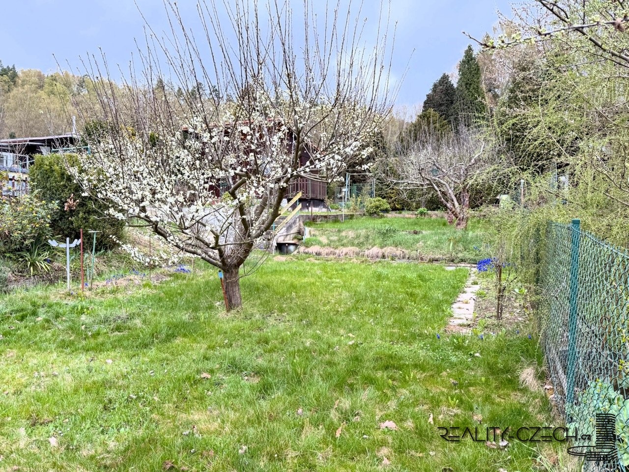 Naše společnost Vám nabízí prodej pozemku - zahrady s malou zahradní chatkou v rekreační oblasti Karlovy Vary - Sadov. Chatka je tvořena polo-suterénním zděným podlažím a dřevěným patrem. V suterénu je místnost na skladování ovoce a místnost s možností osazení malé kuchyně v patře je obytná část. Pozemek o celkové výměře 396 m2 je pouze mírně svažitý a nachází se v území definovaném územním plánem jako plocha rekreace - zahrádková osada. Na pozemku a v rovněž v chatě jsou dostupné inženýrské sítě: vodovod, elektřina. Na pozemku je také vlastní kopaná studna s užitkovou vodou pro zalévání, užitková voda je na pozemek také přivedena za pomocí sezónního vedení užitkové vody. Část pozemku je osazena vzrostlými ovocnými dřevinami. Zahrada je udržovaná. Přístup na pozemek je ze severozápadní strany po příjezdové komunikaci. V blízkosti je zřízeno parkoviště, V blízkém okolí na tomto území jsou zahrádky s malými zahradními chatkami.