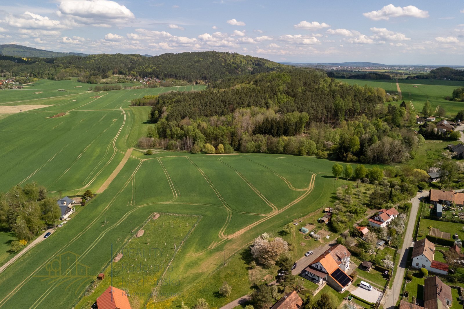 • z celkové výměry 1 900 m² tvoří přibližně 800 m² zastavitelná část určená pro umístění rodinného domu, zbývající plocha je ideální jako zahrada nebo soukromá zeleň
