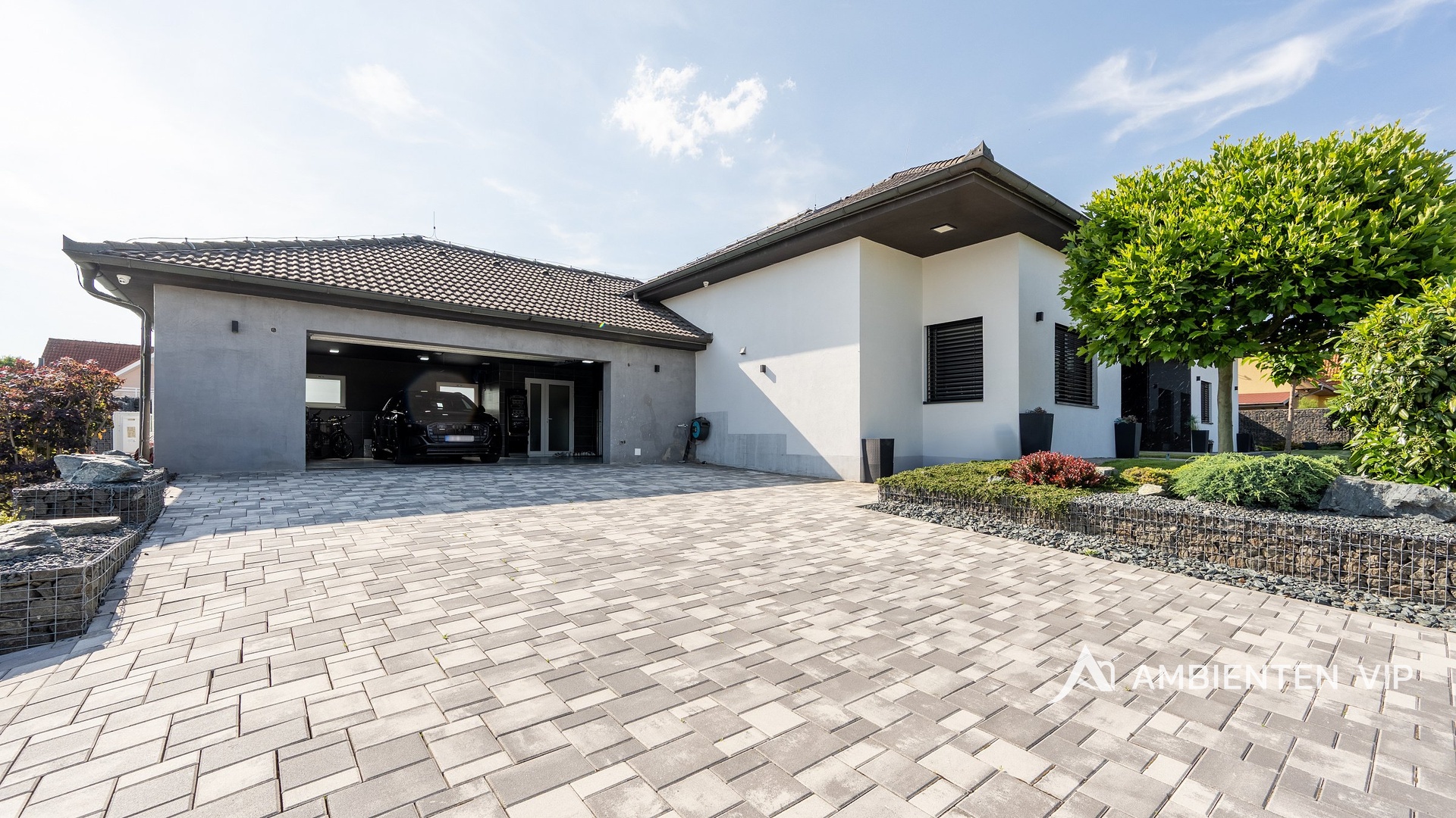 Celý objekt je napojen na fotovoltaickou elektrárnu o výkonu 10 kWh s možností rozšíření až o dalších 30 kWh. Přebytky elektřiny jsou uchovány v bateriích. V každém detailu je patrné, že nemovitost byla navržena s důrazem na funkčnost a komfort – od oddělených technických zón až po přípravu pro další využití prostor.