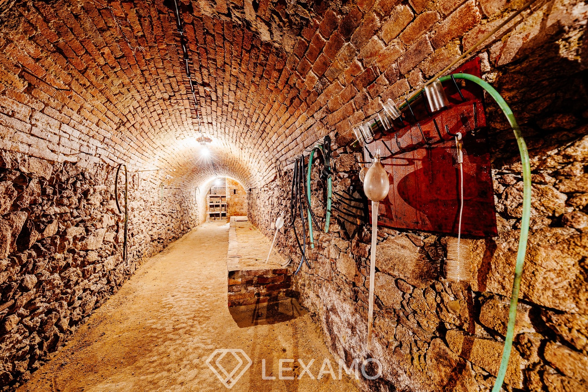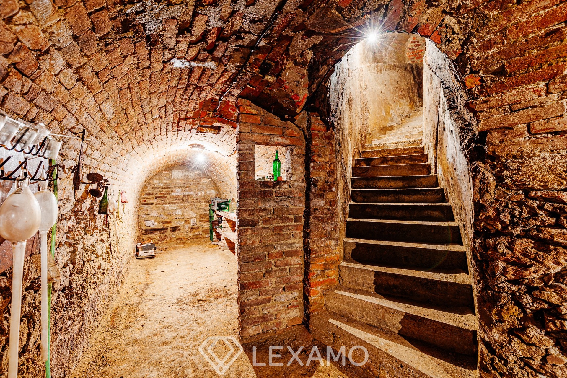 Součástí je útulná chatka. Velkým bonusem je prostorný dvoupodlažní sklep o délce více než 20 metrů, který je vhodný například pro uskladnění vína, ovoce, zeleniny. Tento sklep ocení zejména milovníci vína, protože nabízí ideální podmínky pro jeho skladování. Zahradního náčiní lze uchovávat v malé dílně, kterou najdeme pár kroků od hlavní brány.