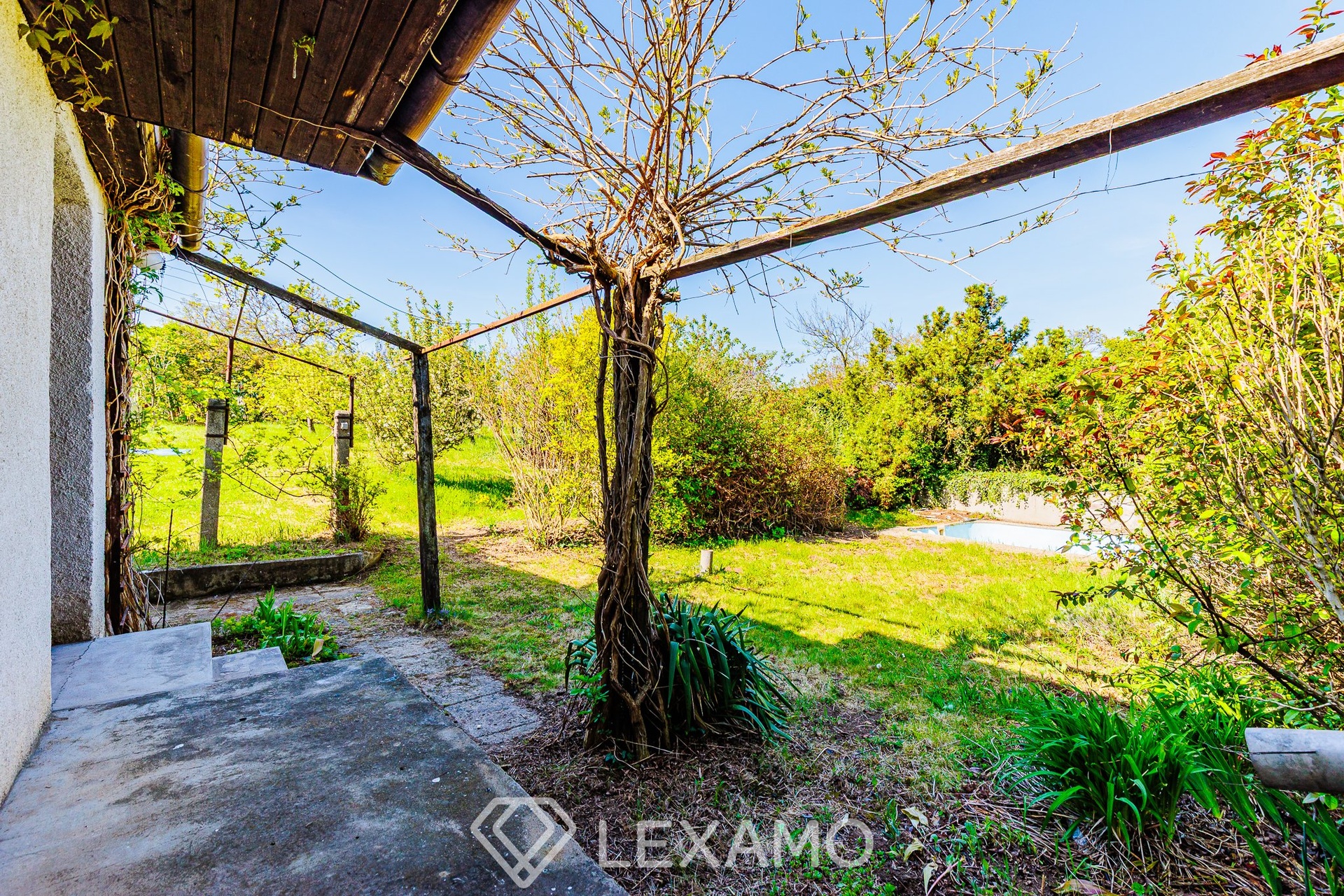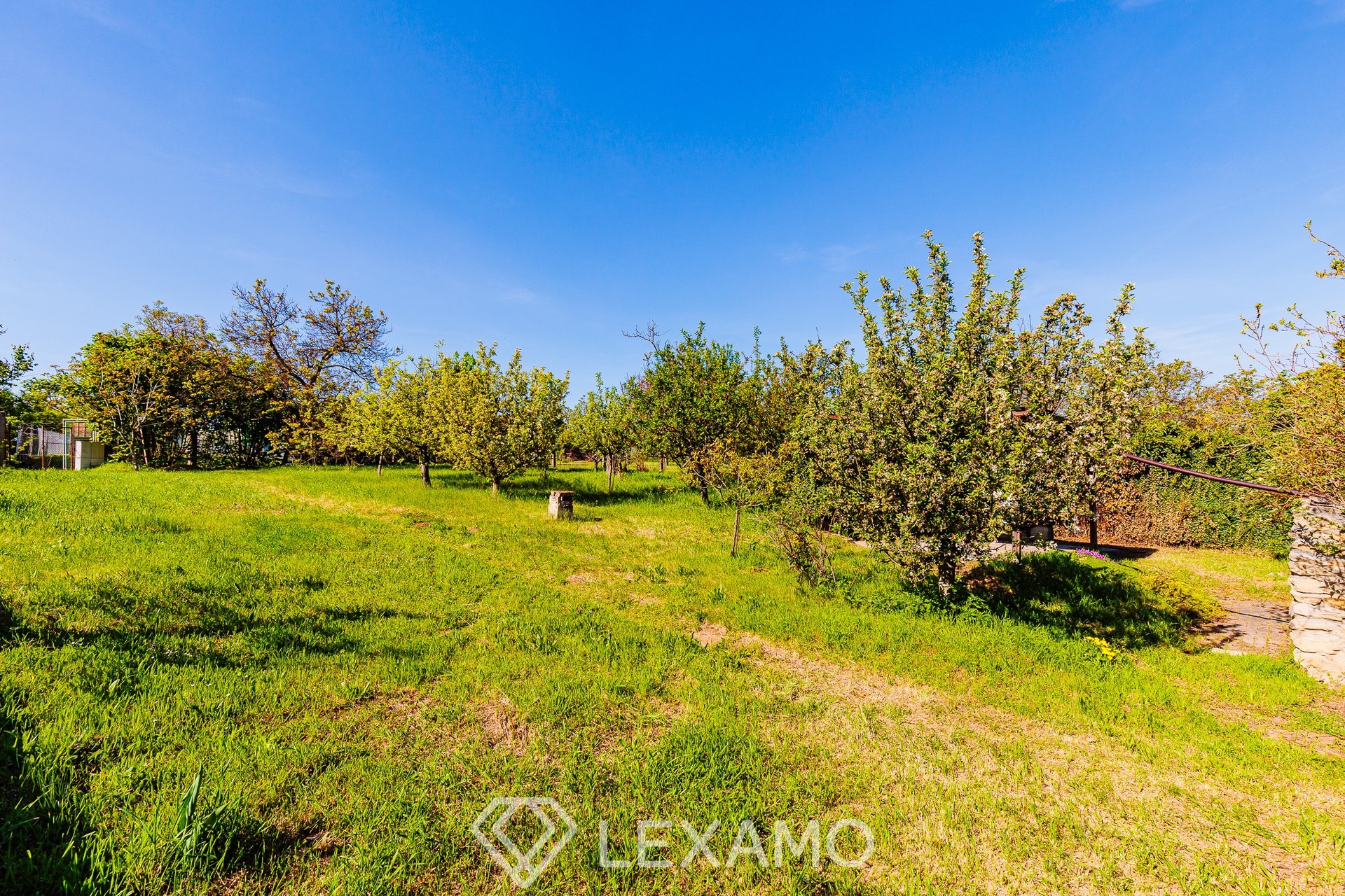 Zahrada je mírně svažitá. Pozemek je osázený množstvím ovocných stromů, okrasných keřů, které vytvářejí příjemné soukromí a poskytují stín v horkých letních dnech. Najdete zde také prostornou pergolu, která je ideálním místem pro posezení s rodinou či přáteli, ať už při grilování, nebo jen při odpočinku s knihou.