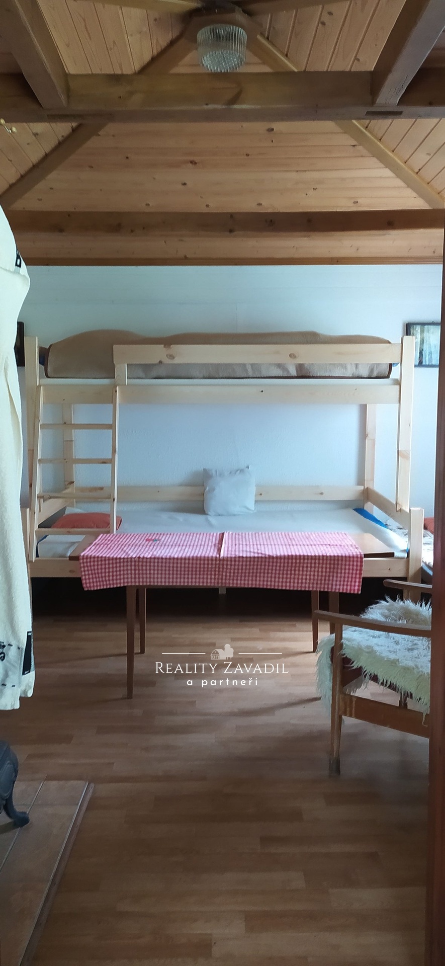Podsklepená chata se zastavěnou plochou 24m2 je napojená na elektřinu a obecní vodovod s pitnou vodou. Stojí na obecním pozemku, kde roční nájemné činí 3 600,-Kč.