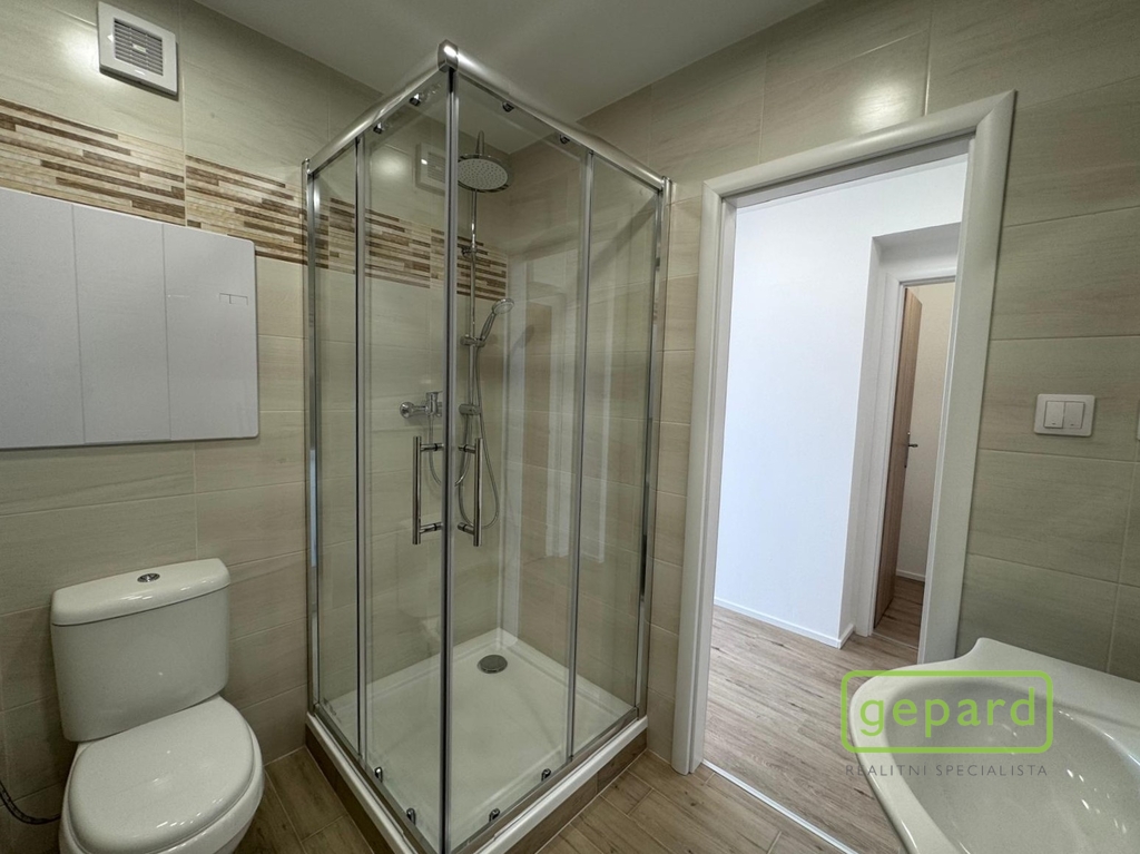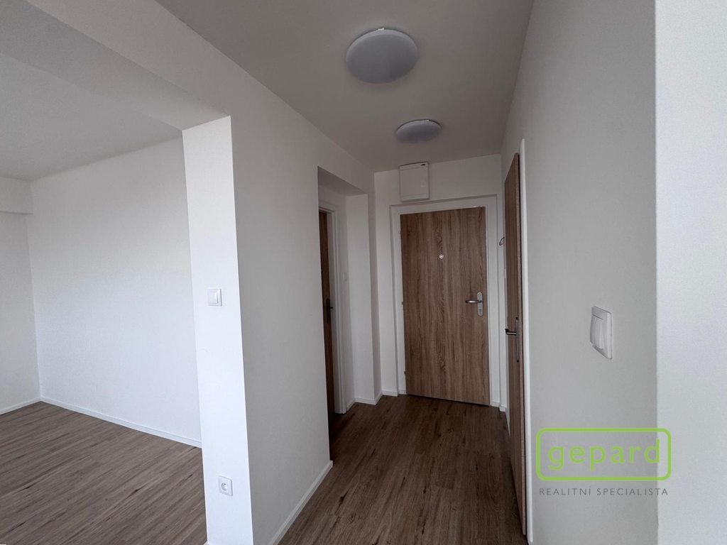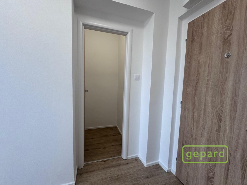 Dispozice bytu je praktická a přehledná. Po vstupu do bytu se nachází předsíň, ze které je přístup do koupelny s vanou a toaletou a také do komory, která poskytuje praktický úložný prostor přímo v bytě. Hlavní obytná část je řešena jako otevřený prostor – nalevo se nachází kuchyňská část a napravo obytný pokoj. Tyto dvě části jsou vzájemně propojené bez dveří, což vytváří příjemný, vzdušný a světlý prostor vhodný pro každodenní bydlení. K bytu náleží také sklepní kóje, která nabízí další úložný prostor například pro kola, sezónní věci nebo sportovní vybavení.