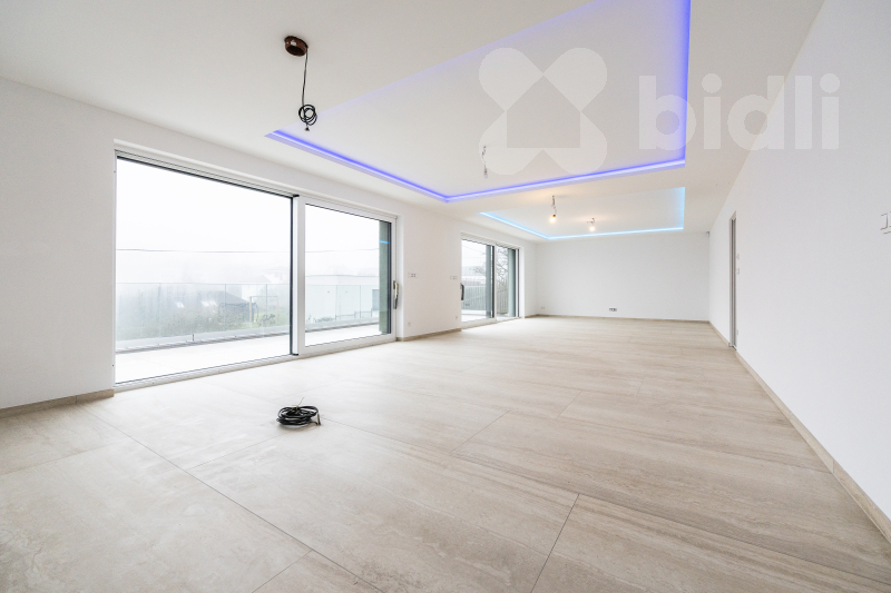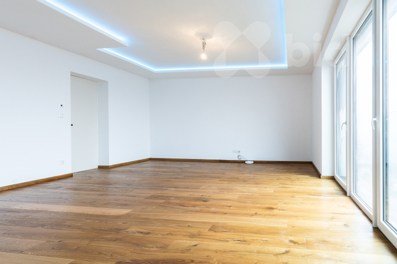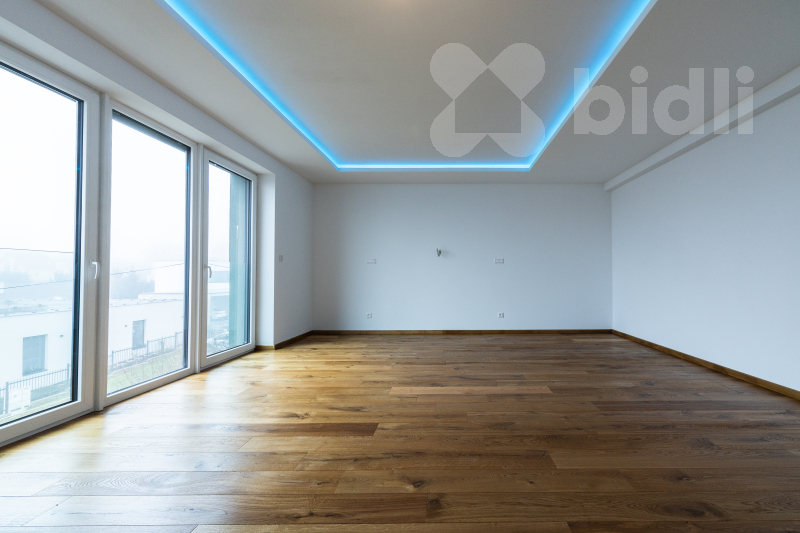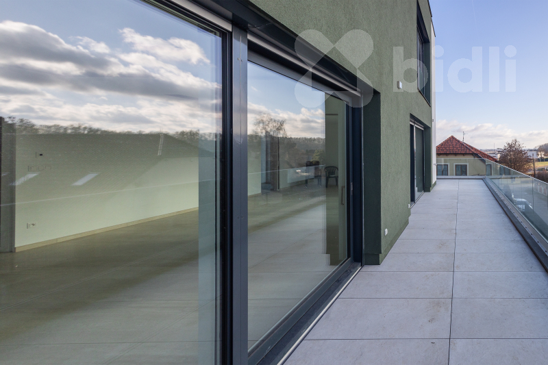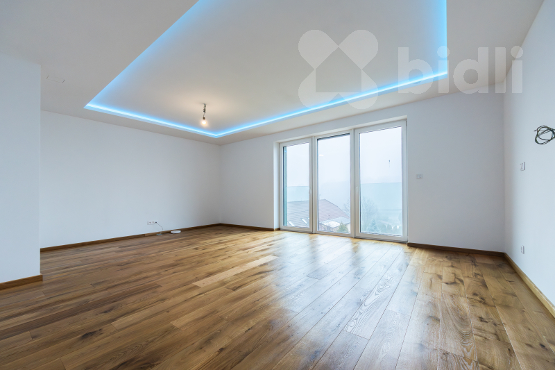 Srdcem domova je impozantní obývací pokoj s kuchyňským koutem o výměře 68 m2. Prostor je navržen tak, aby bez problémů pojal velkou rodinnou sedačku a prostornou kuchyni s ostrůvkem. Jídelní část je připravena pro stůl pro 10 osob, což z domu činí ideální místo pro setkávání. Z obývacího pokoje vstoupíte na hlavní terasu (60 m2) s proskleným zábradlím, která nabízí krásný výhled na Sedlec. Na tomto podlaží se dále nachází pracovna, samostatná toaleta a hlavní koupelna s druhou toaletou. Z této koupelny i z dalšího pokoje (32 m2) je umožněn vstup na zadní, západně orientovanou terasu s horní zahradou.