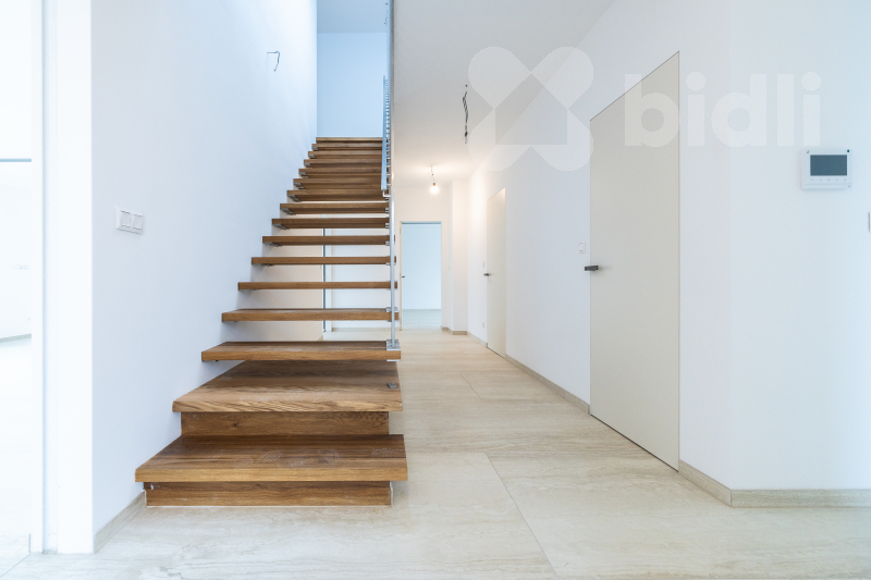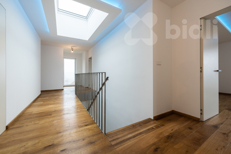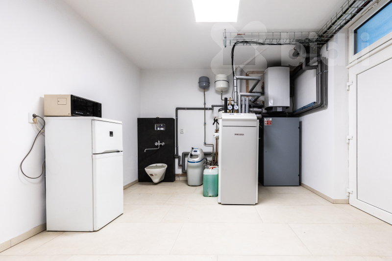 Dominantou suterénu je garáž o rozloze přes 100 m2, která pohodlně pojme čtyři automobily a motocykly. Výhodou garáže je i možnost dobíjení elektronických aut. Na ni navazuje špičková technická místnost. O mimořádně úsporný chod domu se stará tepelné čerpadlo systému země-vzduch a nadstandardní fotovoltaická elektrárna s výkonem 18 kWp s bateriovým úložištěm. V celém domě je instalováno podlahové vytápění. Unikátním prvkem je soukromý výtah, který vás vyveze ze suterénu přímo do obytných pater.