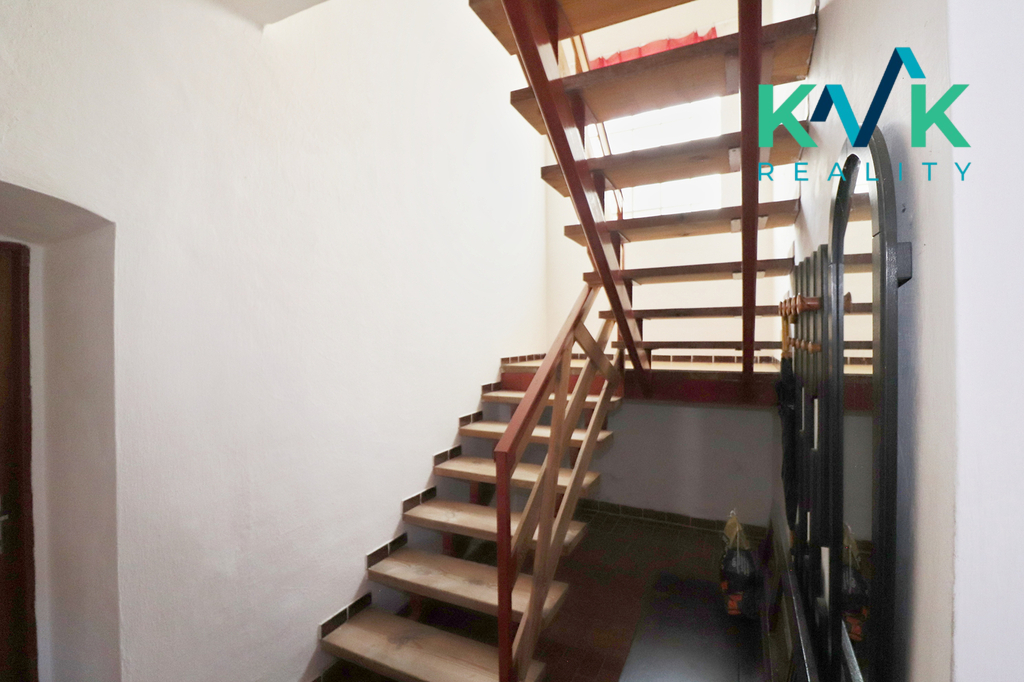 na veřejnou kanalizaci. Obsahuje 4 pokoje, prostornou kuchyň s terasou a sociální zařízení. Tuto část je možno využít k obývání. V