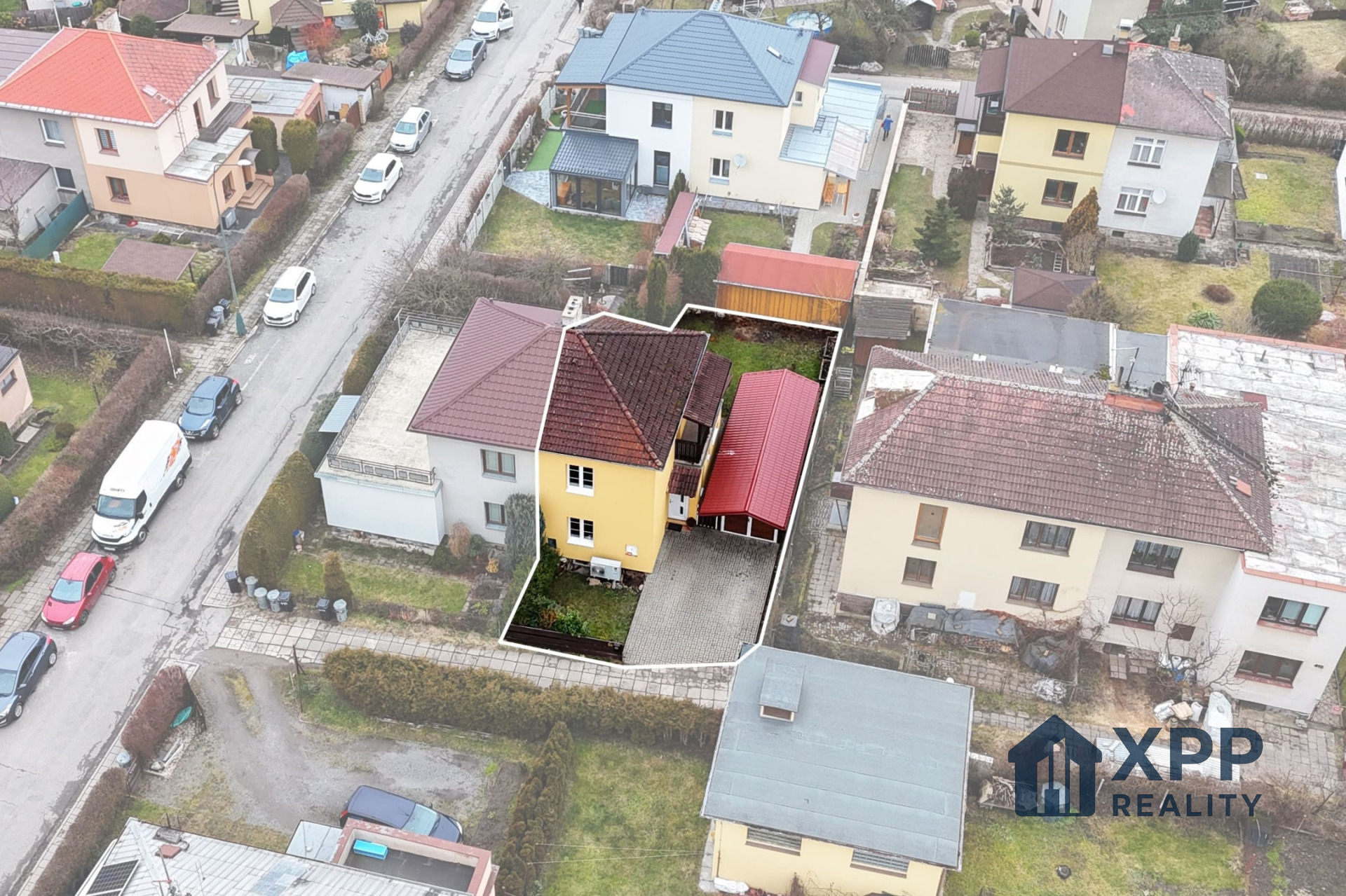 Dům je patrový, cihlové konstrukce, ve velmi dobrém stavu. Dispozici přízemí tvoří vstupní chodba, koupelna s vanou, samostatné WC, kuchyň a obývací pokoj. Z obytné části je vstup na terasu o výměře 15 m² a na zahradu. Součástí domu je také sklep a garáž o výměře 21,45 m².