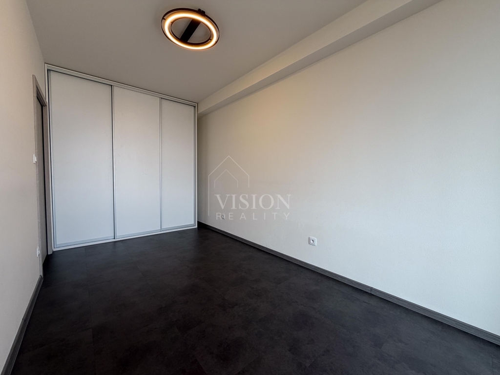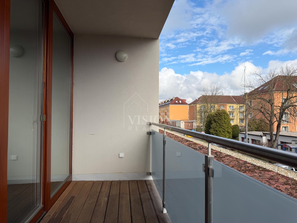 Byt je zrekonstruovaný a nabízí prostorných 54m2. Je zde nová velká kuchyň a dostatek místa i na velký obývací prostor, který je pocitově zvětšen o balkon. Díky velkému prosklenému oknu, které vpouští do bytu dostatek světla, celý interiér působí velice vzdušně a čistě. Ložnice je řešena v podobném stylu a k dispozici je velká šatní skříň. Tento pokoj má také svůj přístup na balkon, což je nejen estetické, ale také velice praktické.