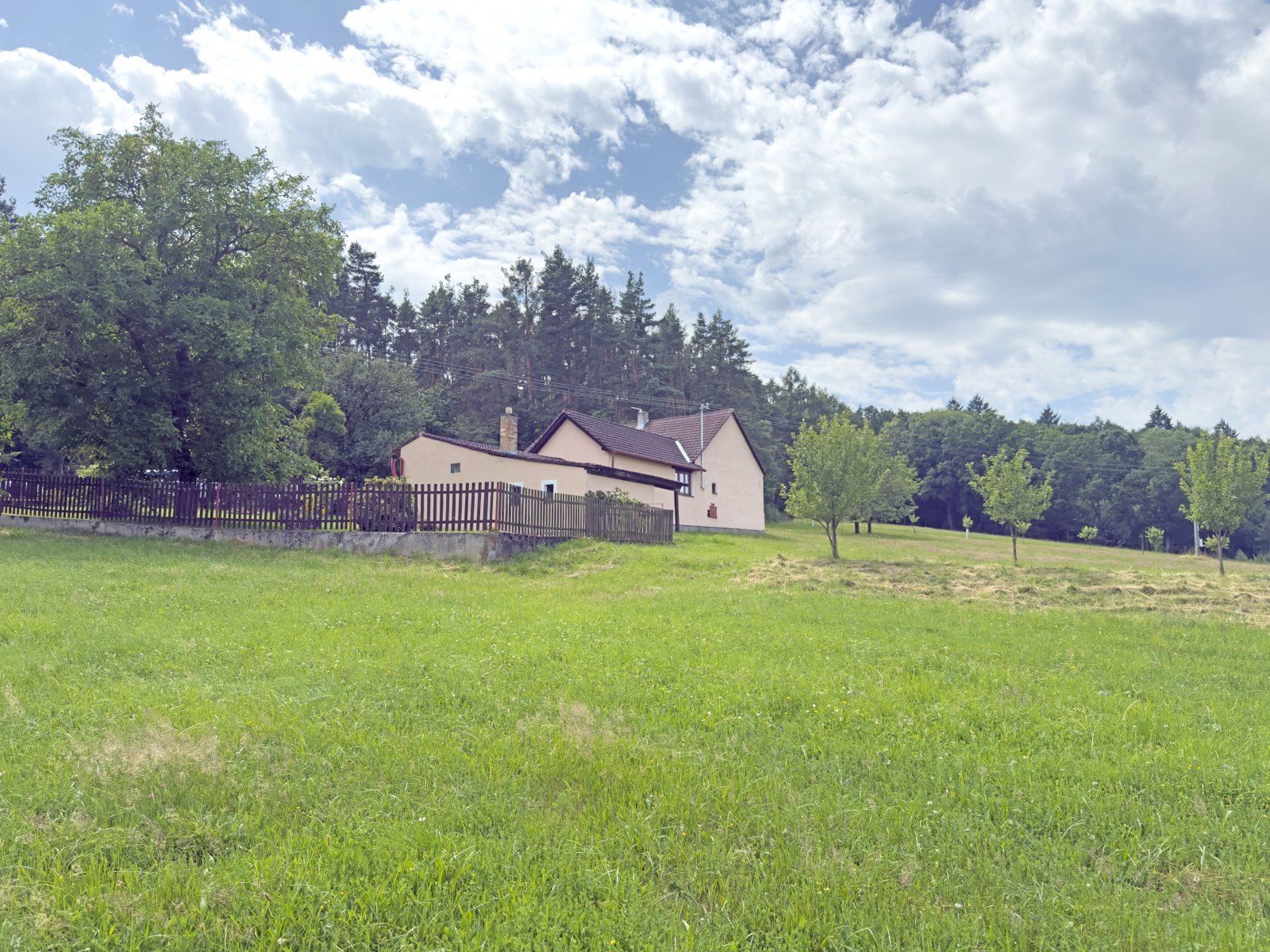 Mezi hlavní budovou a vedlejší stavbou se nachází uzavřený dvorek, který nabízí dostatek soukromí a prostoru k relaxaci. Najdete zde venkovní posezení, krb s udírnou, skleník a prostor pro bazén. Dům stojí na konci obecní cesty, odkud už pokračuje jen les a louky, což zaručuje klidné a nerušené prostředí.