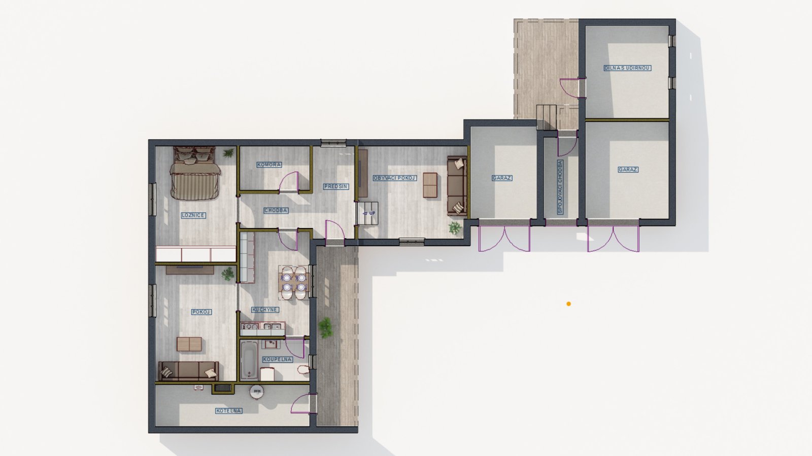 * Hlavní obytná část: plně funkční a ihned využitelná