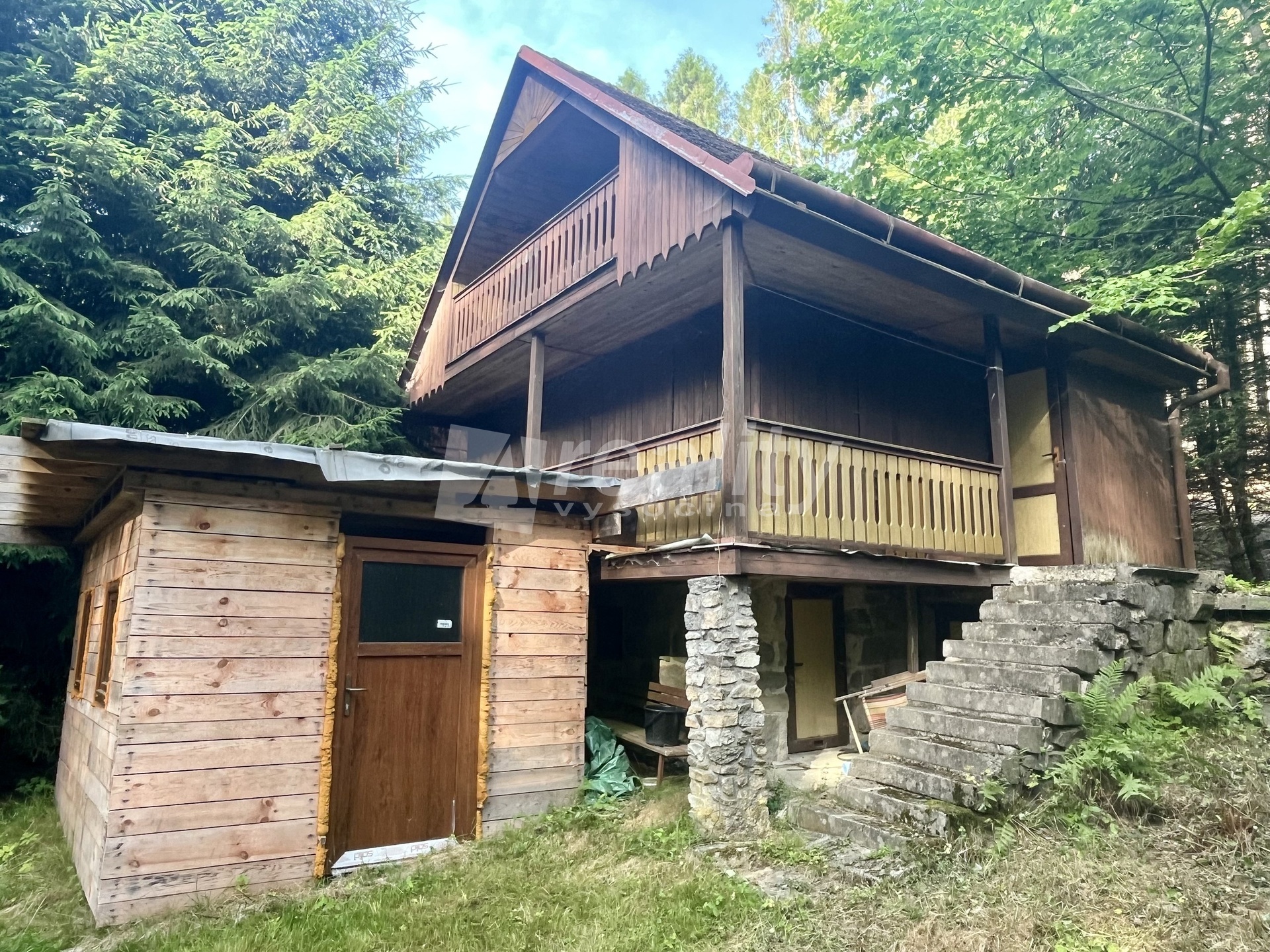 Dřevěná chata na kamenných základech o užitné ploše 58 m² stojí na vlastním pozemku o velikosti 291 m² a aktuálně prochází rekonstrukcí. To vám dává jedinečnou příležitost dokončit ji přesně podle svých představ – a vytvořit si tak místo, které bude skutečně vaše.