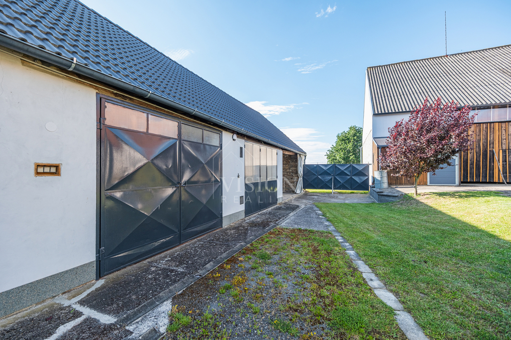 Vytápění domu je řešeno kotlem na tuhá paliva. Objekt je celý podsklepený, což zajišťuje dostatek úložných prostor. K nemovitosti dále náleží zrenovované chlévy, stodola a tři garáže, z nichž jedna je vybavena montážní jámou. Uzavřený dvůr poskytuje dostatek soukromí a nabízí prostor například pro vybudování bazénu.