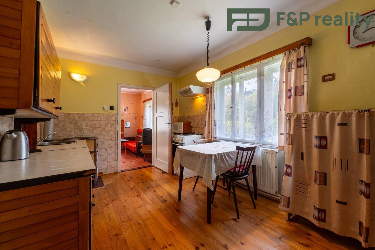 Dům, částečně podsklepený, sice v původním stavu přesto s potenciálem, je předurčen ke kompletní rekonstrukci a nabízí tak možnost realizace úprav zcela dle vašich představ i s případnou úpravou dispozic, se nachází v těsné blízkosti města Semily (2 minuty autem, pěšky cca 15-20 min) a přitom na polosamotě. Dům o současné dispozicí 3+1 je umístěn na jižním mírném svahu s celodenním svitem poblíž silnice. Fasáda je částečně zateplena a to na přístavbě zádveří vstupu z důvodu slabších stěn vč. plechové střechy. Voda je čerpána z povrchové kopané studny s užitkovou vodou na sousedním pozemku se smluvním paktem, odpad je sveden do jímky. Plyn pro vaření je řešen lokálně plynovou lahví umístěnou mimo dům. K domu je napojena ze zadní strany menší dílna a sklad. Ústřední vytápění bylo a je zajištěno kombinací elektrokotle a starého kotle na tuhá paliva umístěné ve sklepě. Součástí sklepa je i prostor pro uchování potravin či pití v chladu a prostoru pro uložení uhlí/dřeva s vhozem. Velká zahrada poskytuje dostatek prostoru pro relaxaci, grilování, pěstování, chov nebo dětské hrátky. Součástí pozemku je i část přilehlého lesa o ploše 135 m2 a příjezdové cesty s věcným břemenem přístupu a vjezdu pro horní domy.