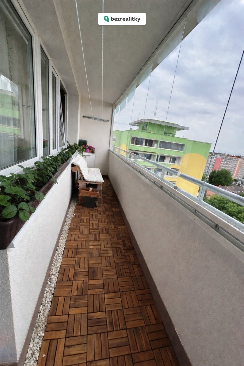 Dispozice bytu zahrnuje obývací pokoj s kuchyňským koutem, dvě samostatné ložnice, koupelnu a praktickou komoru. K bytu náleží dvě lodžie, z nichž jedna je zasklená, a sklepní kóje.