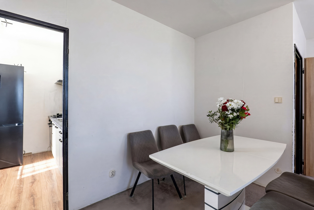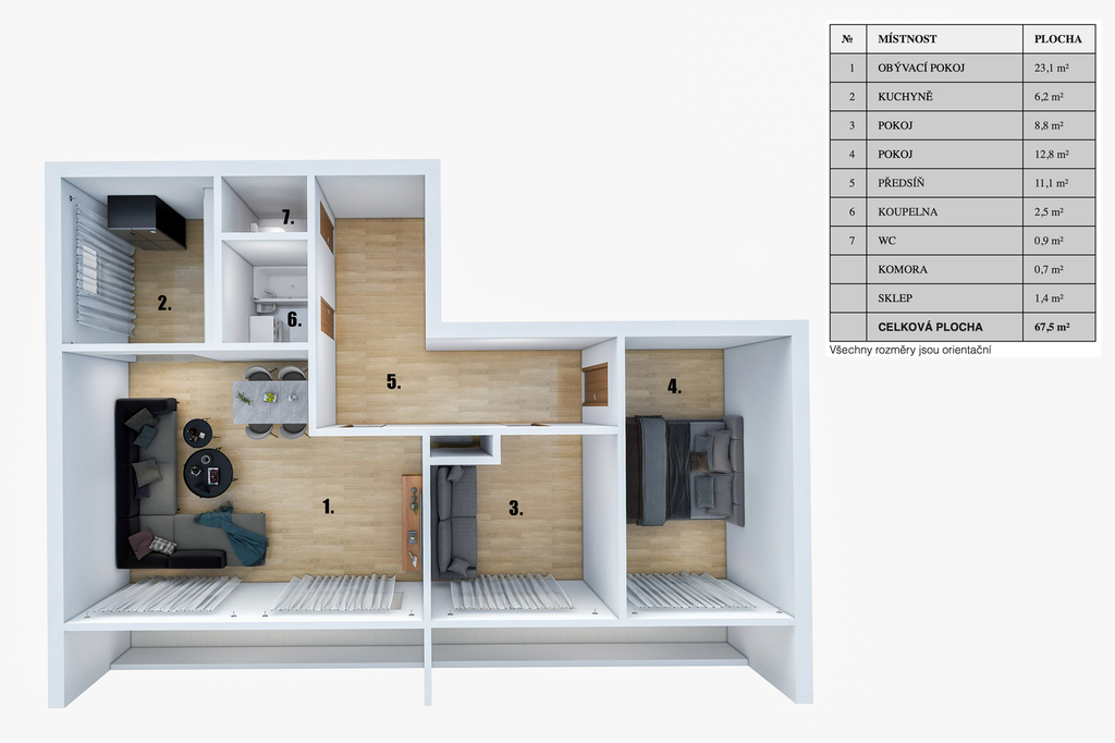 Nabízíme Vám útulný a světlý byt 3+1 o výměře 65,4m2. K bytu náleží dvě lodžie (celkem 12,5m2), komora na patře u bytu (0,7m2) a sklep v suterénu domu (1,4m2). Tento byt se nachází ve 4.NP zatepleného panelového domu s výtahem. Samotný byt je v původním, avšak dobře udržovaném stavu. Byt si tedy rovněž můžete přizpůsobit přesně podle dvého vkusu. Dispozičně je řešen ideálně. Všechny místnosti jsou přístupné z předsíně (chodby). Dvě neprůchozí ložnice s obývací pokoj s kuchyňským koutem do L, oproti kuchyňské lince je okno, denní světlo je zde velmi příjemné a praktické. Jádro je původní (umakart). Koupelna s připojením na pračku, WC odděleně. V případě rekonstrukce jádra a kuchyně by se dala zvětšit koupelna a současně rozšířit kuchyňská linka (klidně i do tvaru L). Pokud jde o lokalitu, tak tu považuji za velikou výhodu. Jedná se o poklidnou část města, nacházející se na okraji města u přilehlých polí. Bydlení tak nabízí příjemné, poklidné bydlení rodiny s dětmi. 5 minut pěšky je Billa, základní i mateřská škola, nebo víceúčelové sportovní centrum s aquaparkem. S financováním Vám rádi pomůžeme prostřednictvím našeho skvělého hypotečního poradce s mnoholetými zkušenostmi se všemi bankami. Doporučuji včasnou osobní prohlídku tohoto bytu.