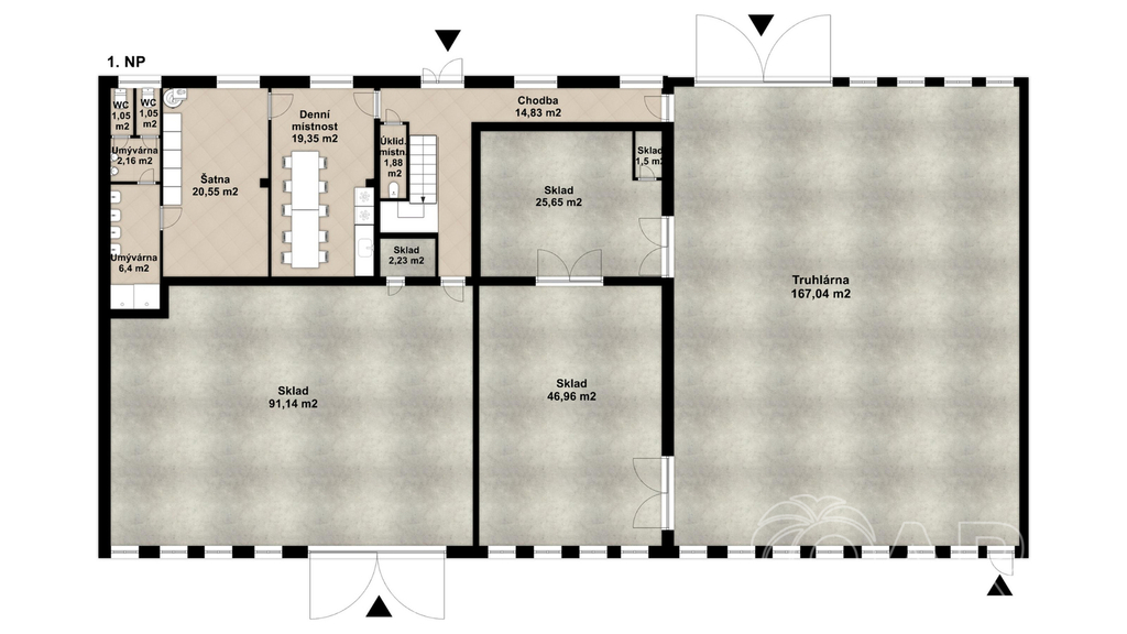 skladové a obslužné prostory