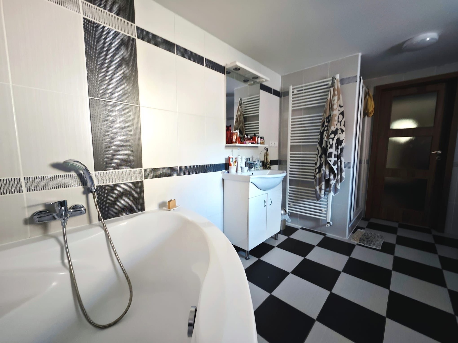 V bytě je nová kuchyňská linka včetně vestavěných spotřebičů (horkovzdušná trouba včetně sklokeramické desky, digestoř, myčka). Koupelna se sprchovým koutem i vanou. Vytápění je řešeno vlastním plynovým kotlem (výhoda, která zaručuje nízké provozní náklady).