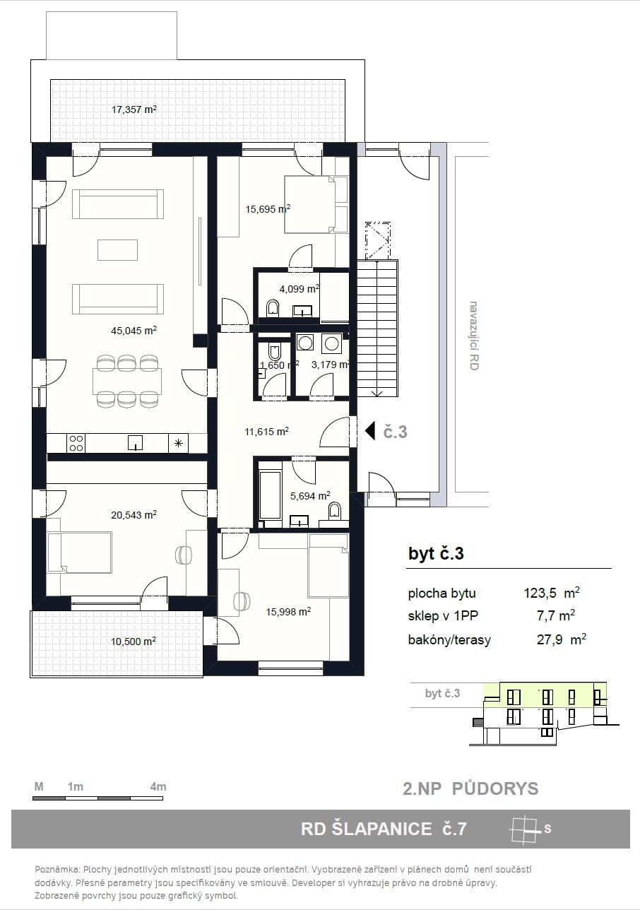 Byt č.3 o celkové ploše je umístěn v 2.NP
