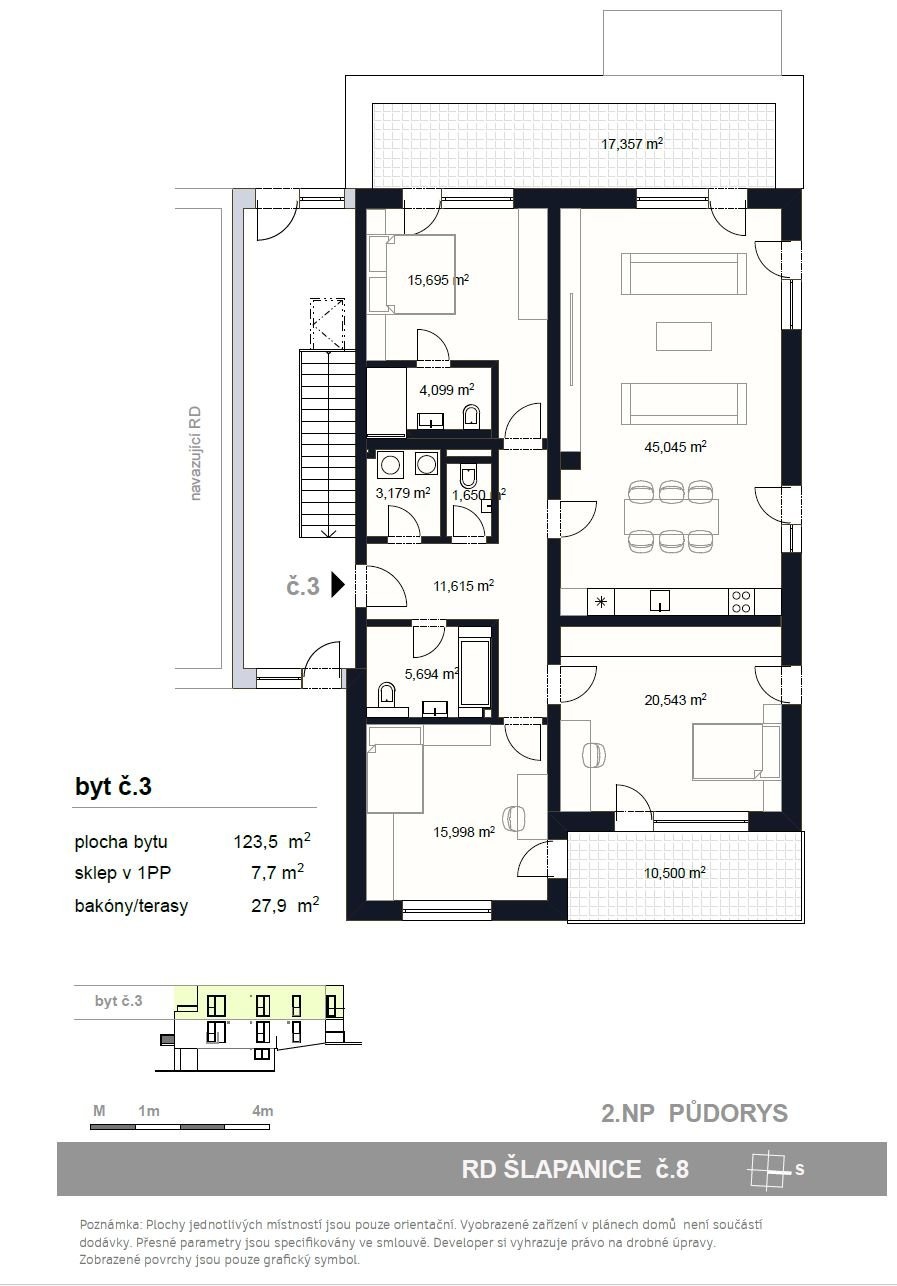 Byt č.3 o celkové ploše je umístěn v 2.NP