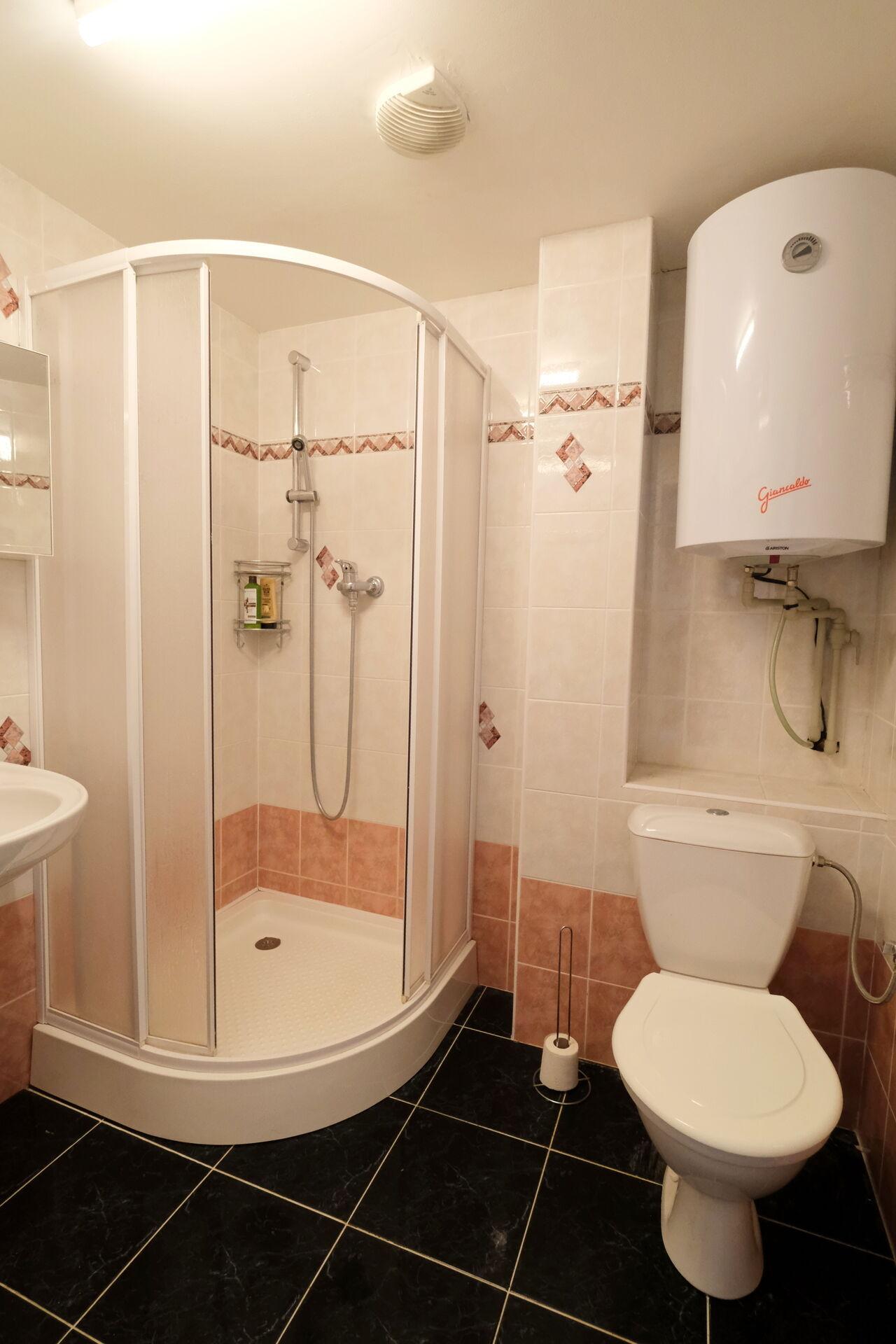 Apartmán je prakticky řešený, z předsíně vedou samostatné vchody do ložnice, koupelny i obývacího prostoru. K ložnici patří balkon, odkud máte krásný výhled do klidu - na vlastní pozemek, přes vzrostlé stromy vidíte vodní plochu přehrady. Ložnice je vybavena velkou vestavnou skříní z kvalitního materiálu se zrcadlem. V obývacím pokoji je prosklená stěna, která byt velmi příjemně prosvětlí a zároveň odtud máte možnost sledovat západ slunce. Prostorný kuchyňský kout je vybaven kvalitní kuchyňskou linkou vyrobenou na míru s vesavěnými spotřebiči.