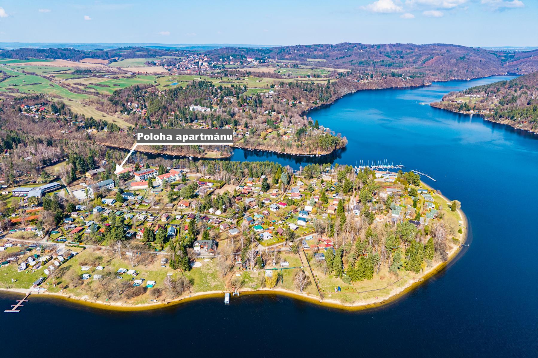 Slapy a okolí jsou jednou z nejoblíbenějších rekreačních oblastí v České republice, ideální pro milovníky vodních sportů ( modrá loděnice Jacht klub se nachází v blízkosti rekreačního objektu ), rybaření, úžasná příroda s cyklostezkami okolo přehrady a písčitými plážemi s možnostmi koupání v létě. Výborná dostupnost z Prahy, cesta autem trvá cca 40 minut.