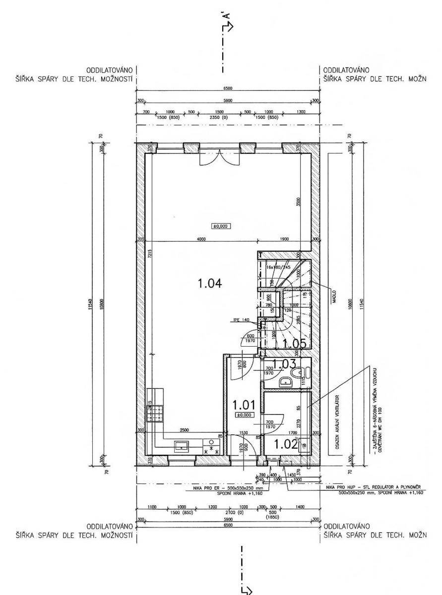 Vytápění zajišťuje plynový kotel, který zároveň ohřívá vodu. Energetická náročnost je ve třídě C, takže provoz domu je rozumně úsporný.
