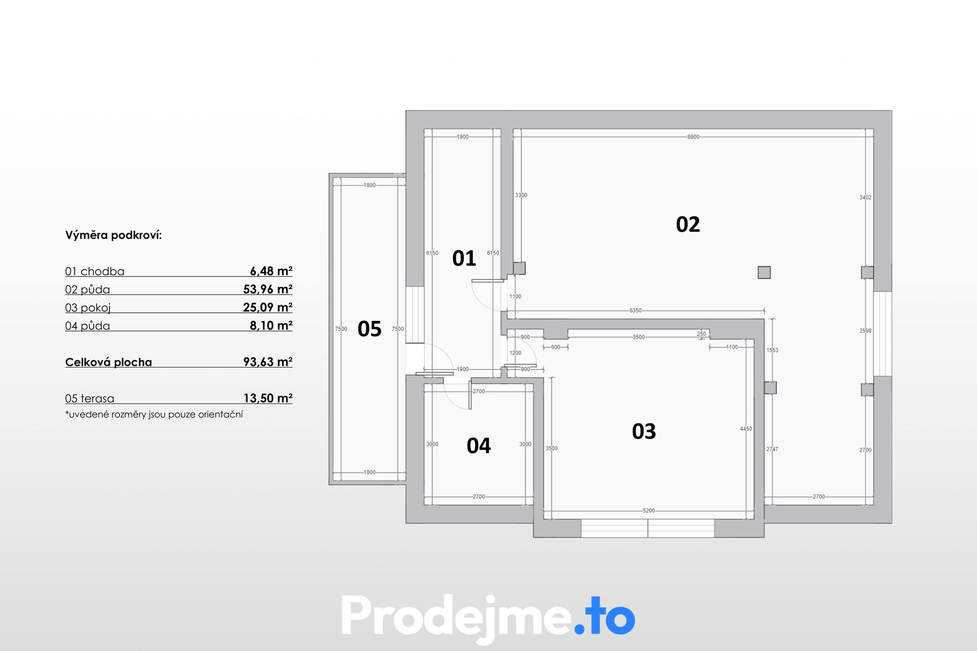 V podkroví se aktuálně nachází jeden pokoj a vstup na terasu. Zbytek prostoru tvoří velkorysá půda s výrazným potenciálem pro vybudování dalších obytných místností. Celý dům tak nabízí zázemí pro velkou rodinu i prostor pro hobby či podnikání.