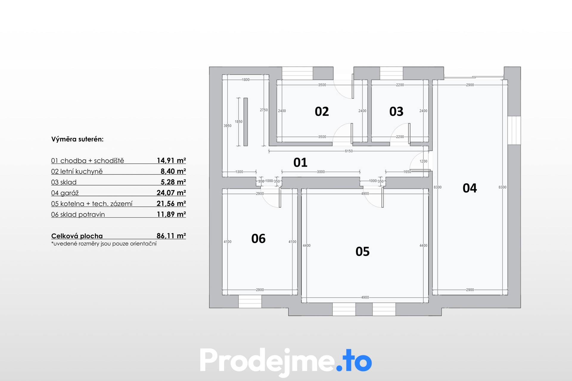 Dům je podsklepený a nabízí dvě nadzemní podlaží. V současném uspořádání je řešený jako 5+1 s užitnou plochou přibližně 213 m². Suterén o velikosti 86 m² tvoří prostorná garáž, letní kuchyně s přímým vstupem na zahradu, velká technická místnost a dva sklady.