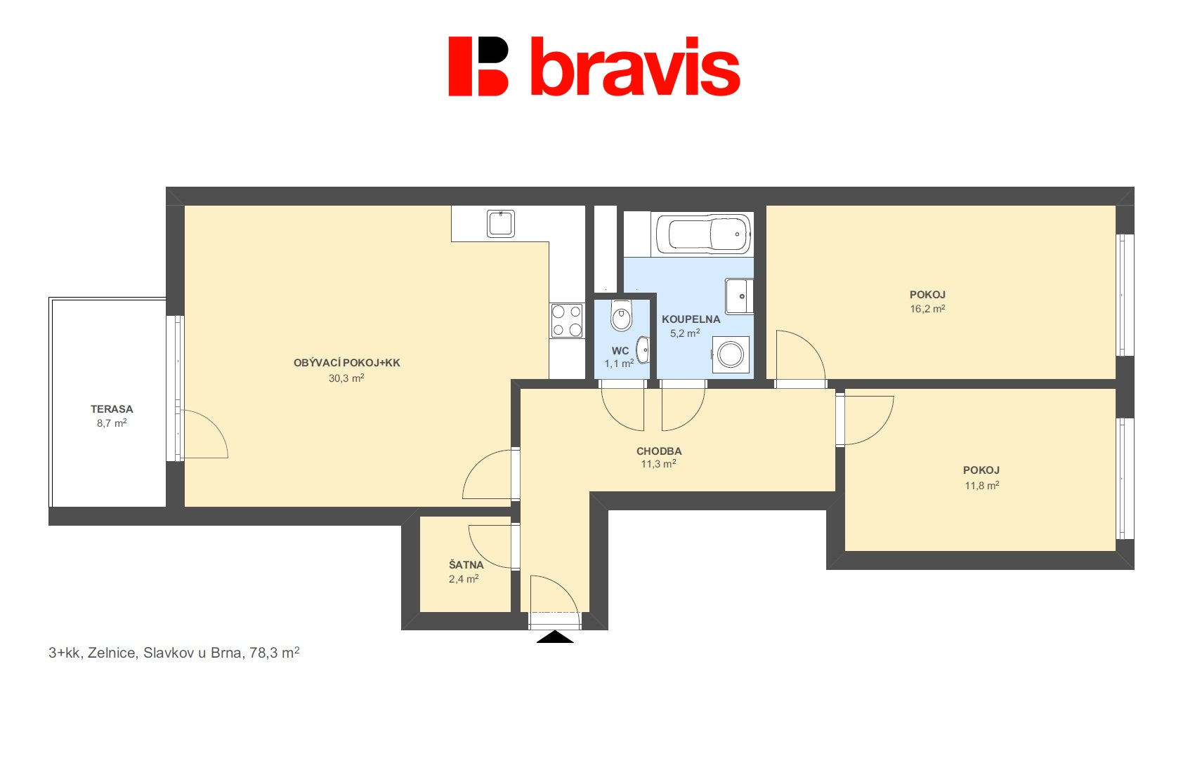 Prodej prostorného a moderního bytu 3+kk s terasou, garážovým stáním a sklepem, Slavkov u Brna - Zel