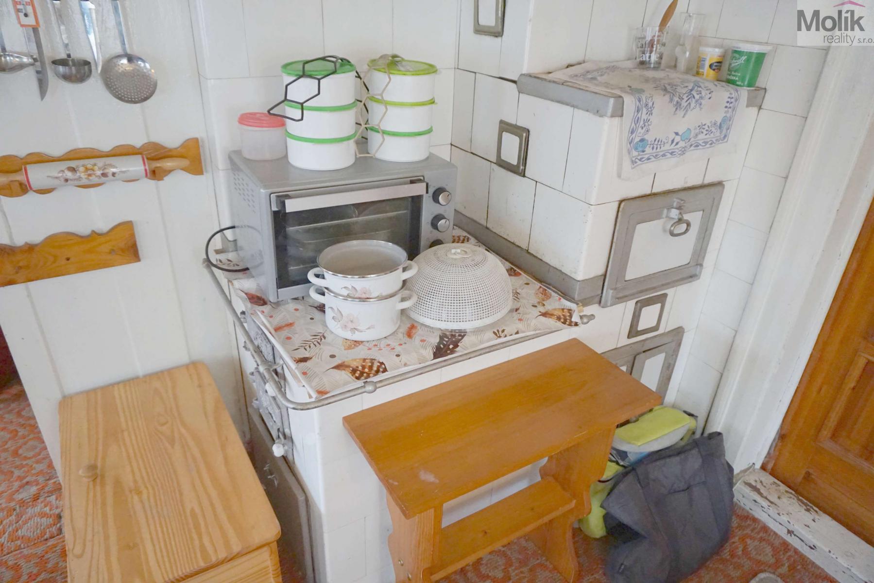 o obývací pokoj nadstandardně velký 32 m2 s kachlovou pecí, ideální pro společná posezení,