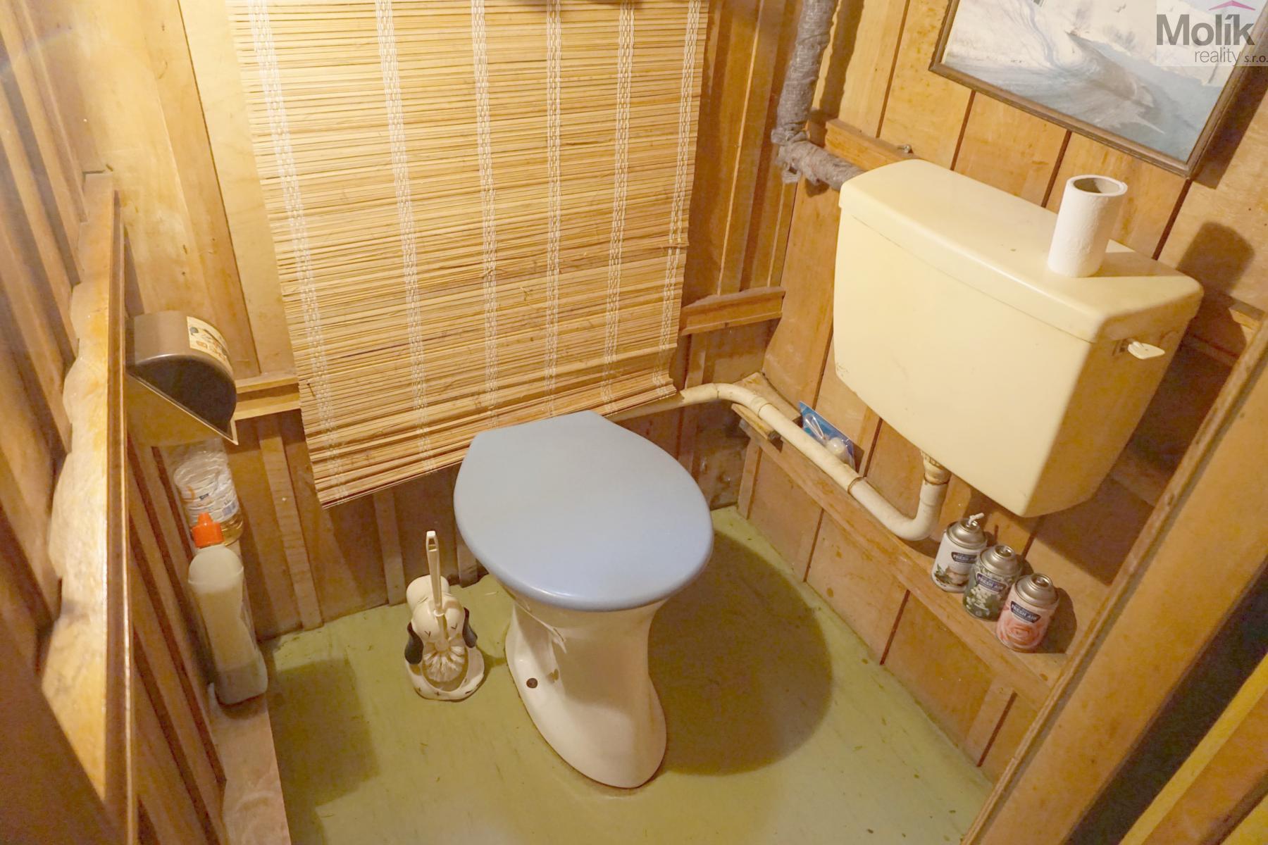 o WC splachovací v průchodu kůlnou na zahradu