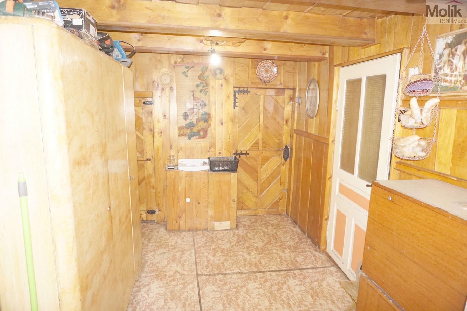 o z chodby naproti schodišti je vstup do dílny a skladu materiálu 26 m2 nad kůlnou