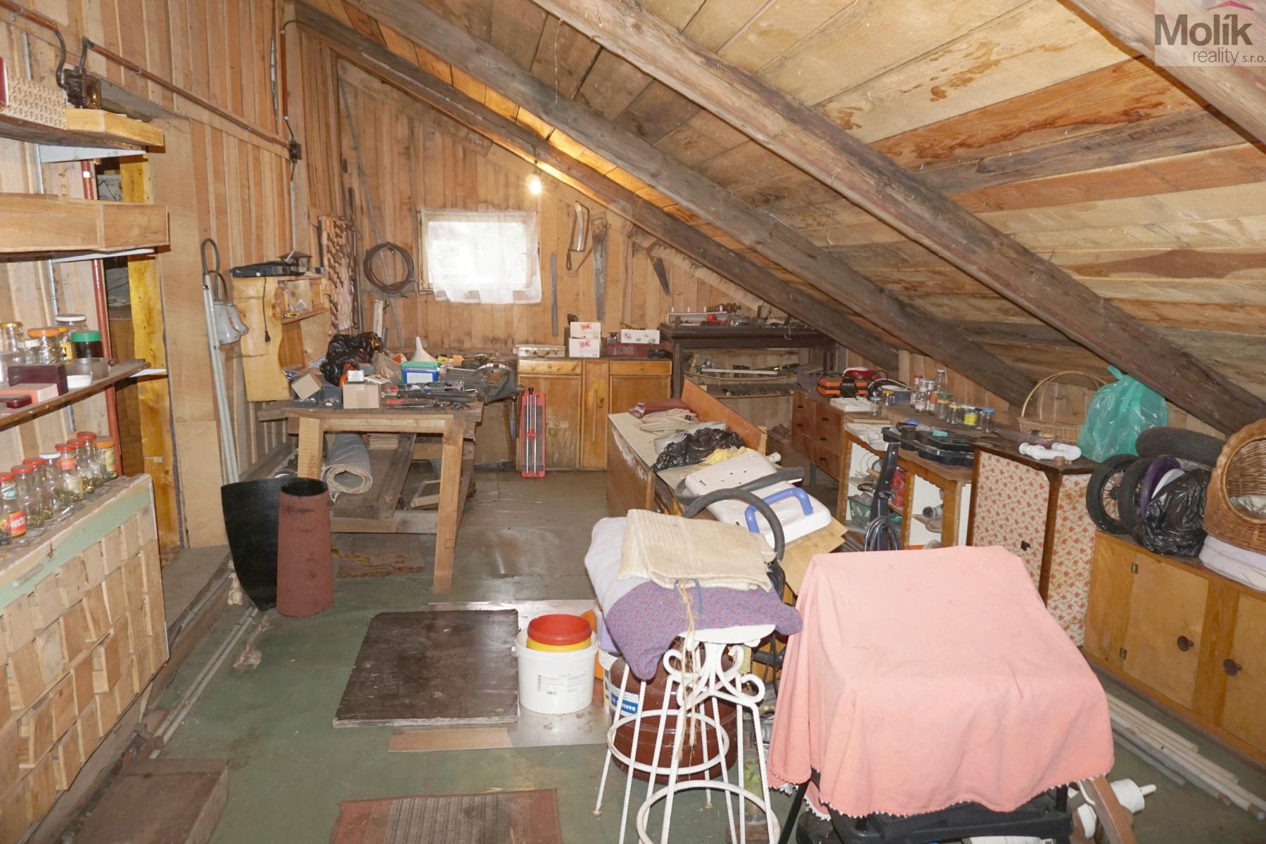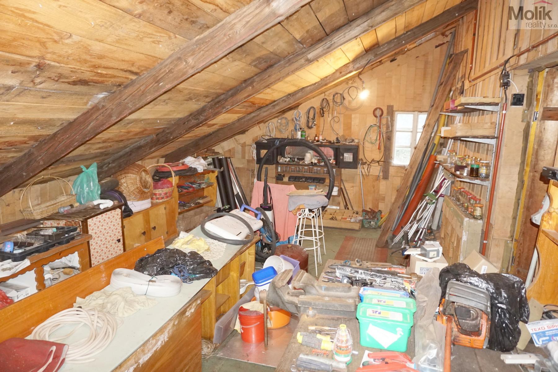 o půdu 62 m2 nad hlavní obytnou částí lze využít pro úložné účely nebo adaptovat na další obytný prostor.