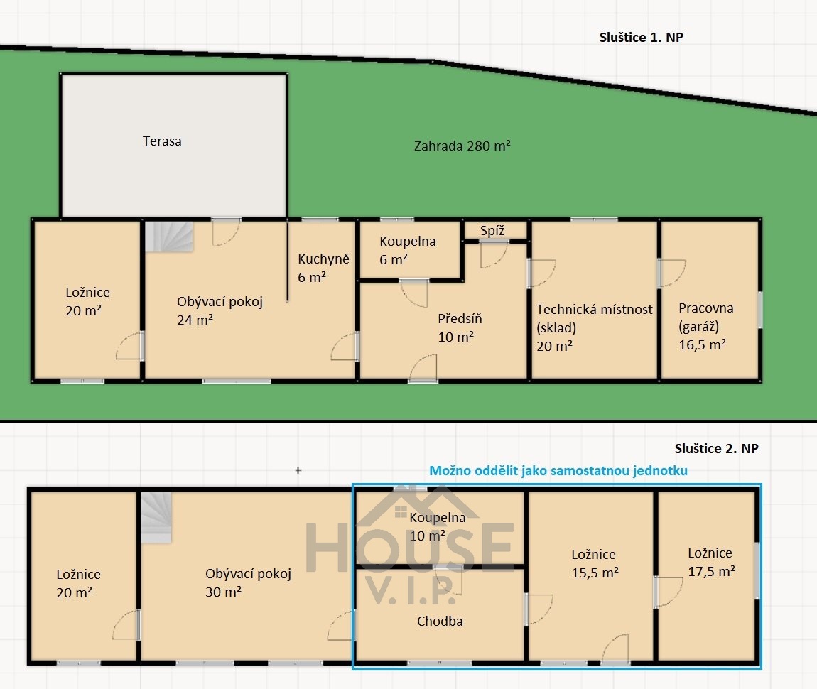 Pořízením této nemovitosti vyřešíte vlastní bydlení, které může být i dvougenerační nebo lze nemovitost pořídit za účelem jejího pronajímání. Horní podlaží umožňuje instalaci další kuchyňské linky a disponuje druhou koupelnou a WC.