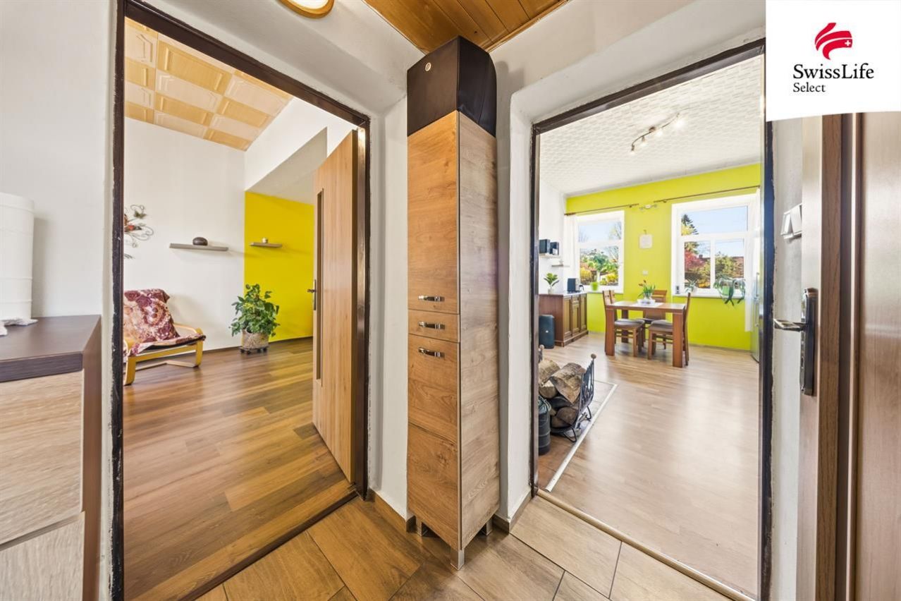 Dispozice bytu je 2+1 a užitná plocha činí 60 m2. Bytová jednotka se nachází v 1. nadzemním podlaží a je tzv. "podřezaný", takže zde nedochází k žádným nežádoucím stavům, plísni apod. Dispozice bytu: 2 pokoje, kuchyně, koupelna, wc, chodba a zádveří. Rozvody vody a elektřiny jsou nové (plast, měď). Vytápění je řešeno krbovými kamny, ohřev vody el. bojlerem. Voda a kanalizace jsou obecní.