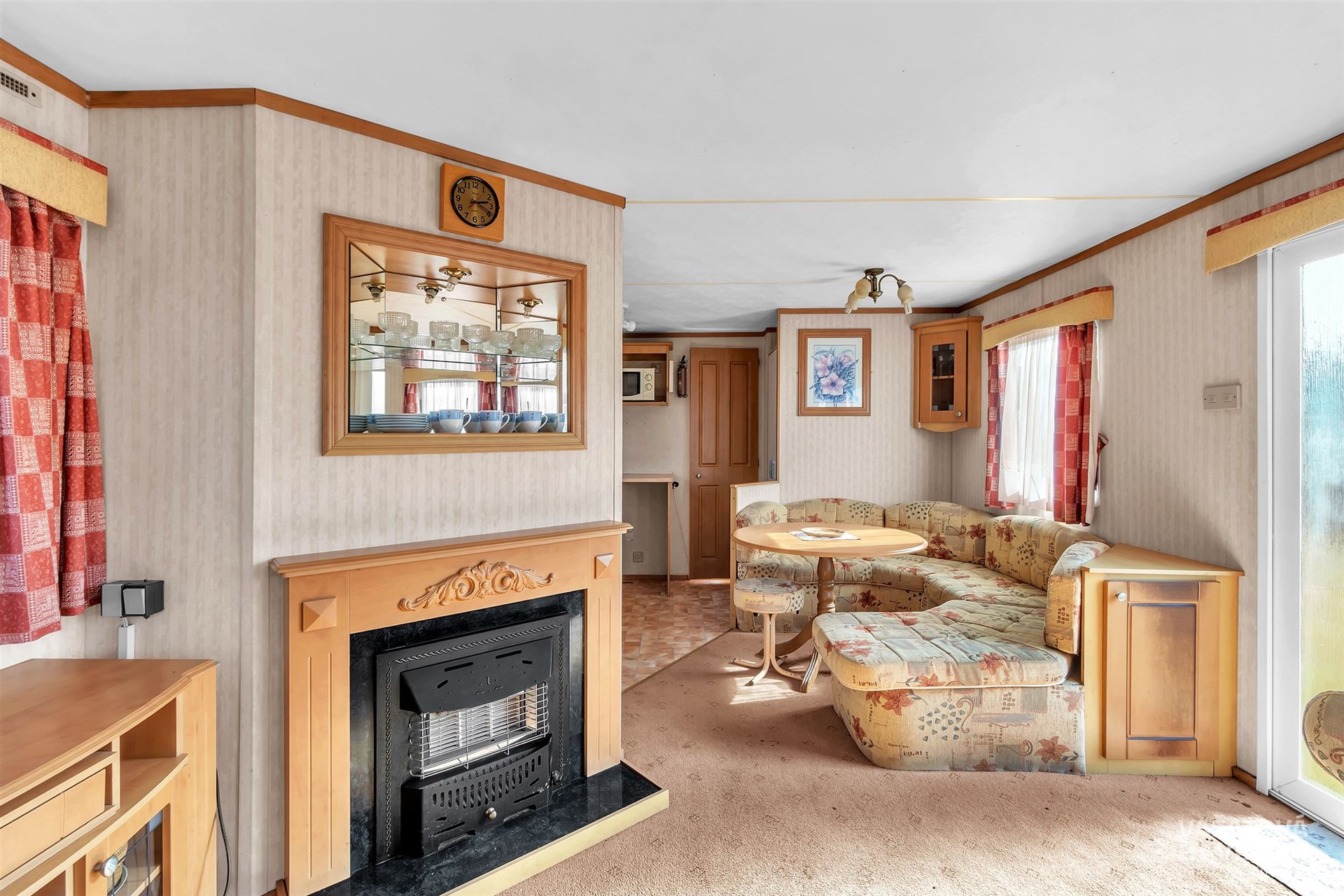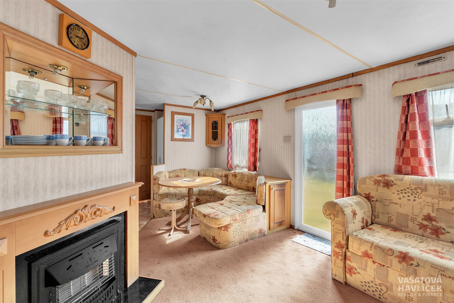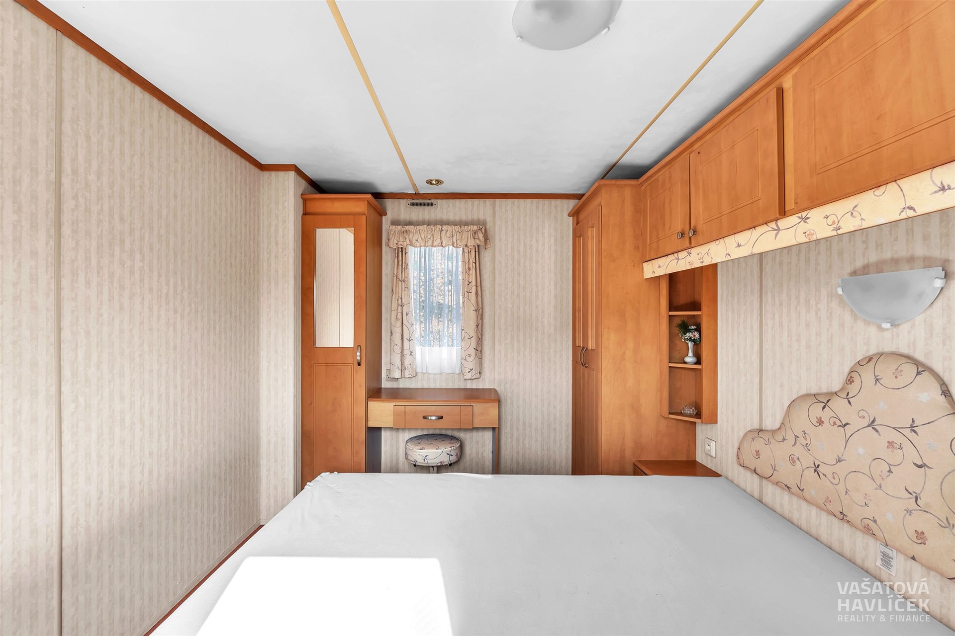> mobilheim se dvěma ložnicemi, obývacím pokojem s kuchyňským koutem a koupelnou