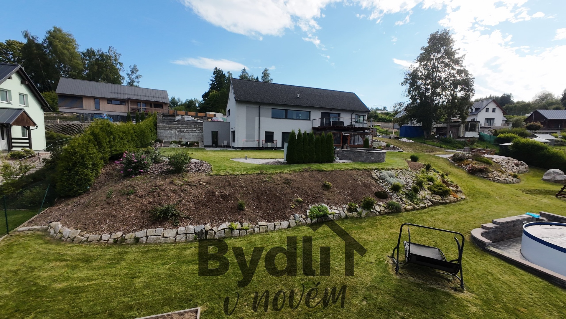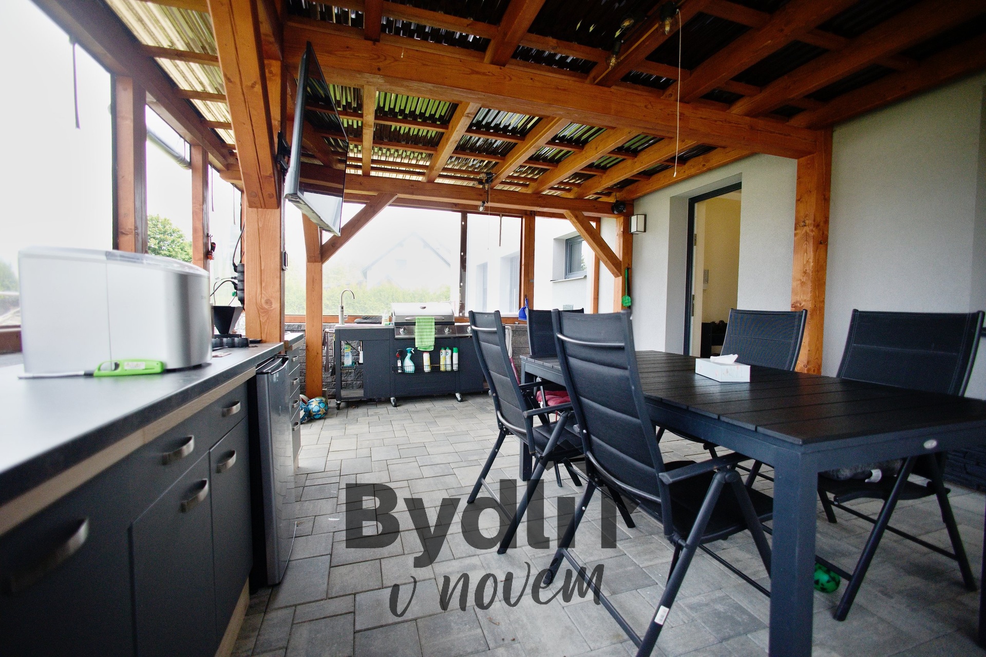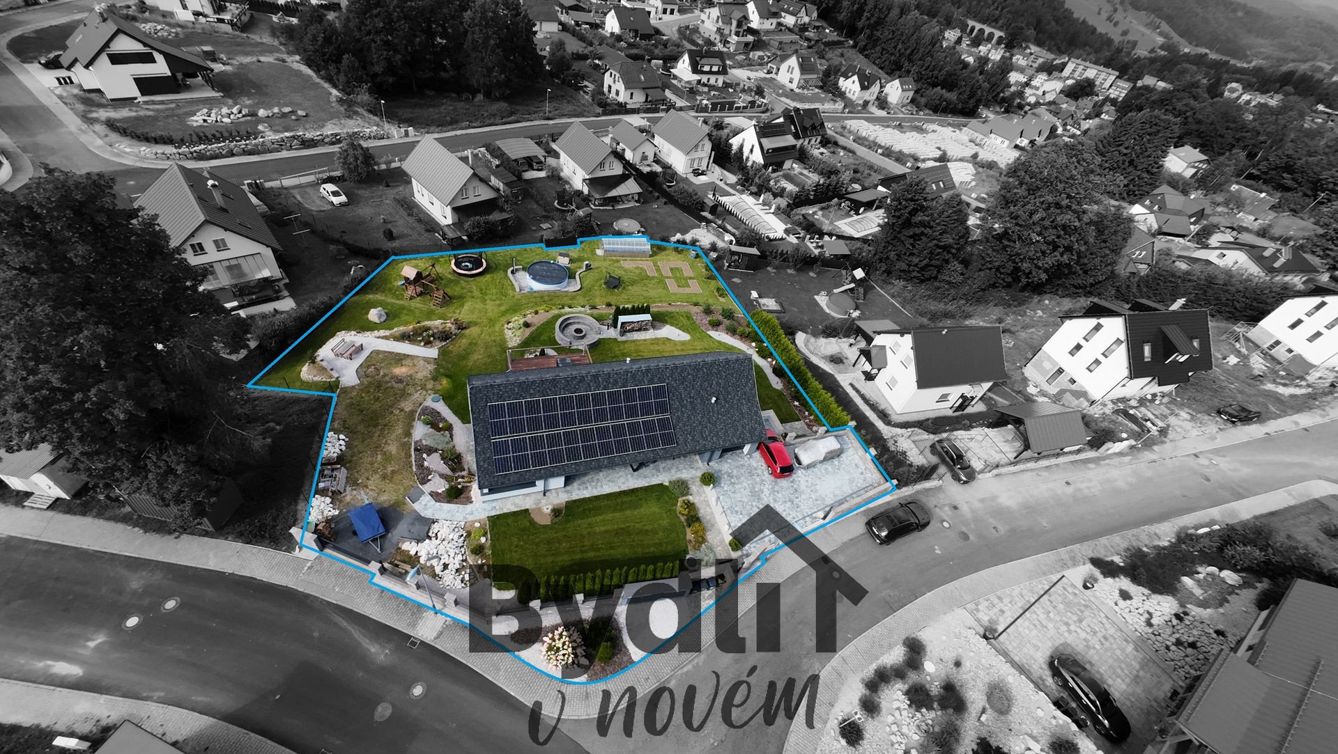 Nabízíme vám k prodeji unikátní nízkoenergetickou rezidenci 5+2kk na velkorysém pozemku 1 913 m², která definuje moderní standard bydlení.