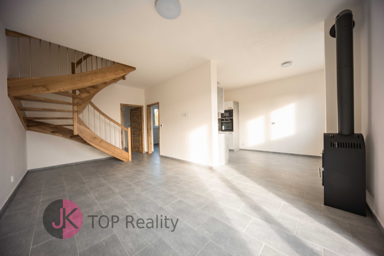 Bude zde nová kuchyňská linka na míru se sklokeramickou deskou a el. troubou, digestoří a myčkou na nádobí. Na podlaze bude vinyl a dlažba. V přízemí domu bude elektrické podlahové vytápění + krbová kamna. Půdní úložný prostor.